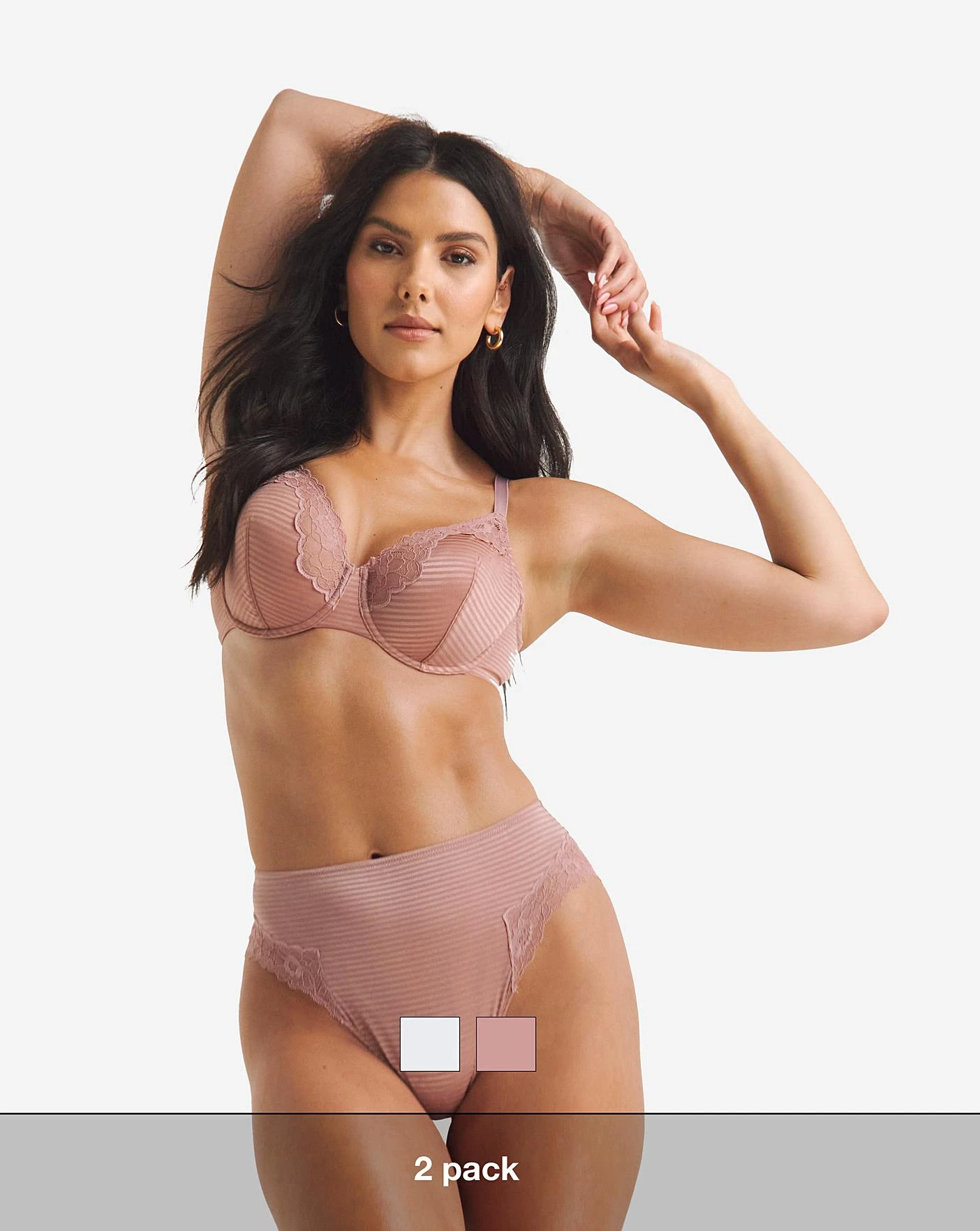 The Phoebe 2 Pack Everyday Stripe Full Brief is the perfect addition to your lingerie wardrobe. The full brief is a staple brief for your everyday wardrobe. These briefs offer full coverage and a high waist to better support and comfort you throughout the day. It is an everyday essential for everyone. Shop this style in sizes 12 to 30. Match with the Phoebe everyday balcony bra to complete the look.