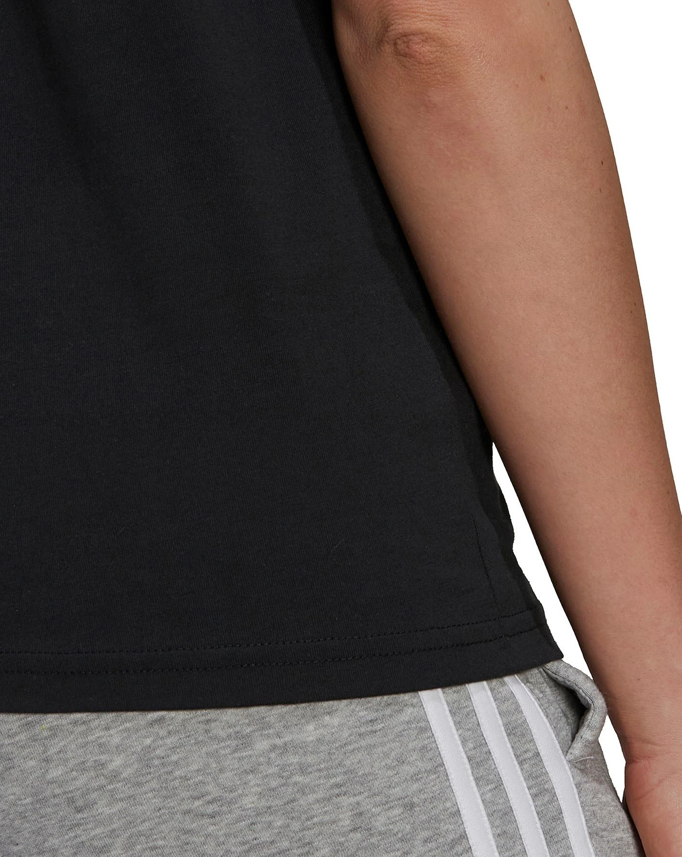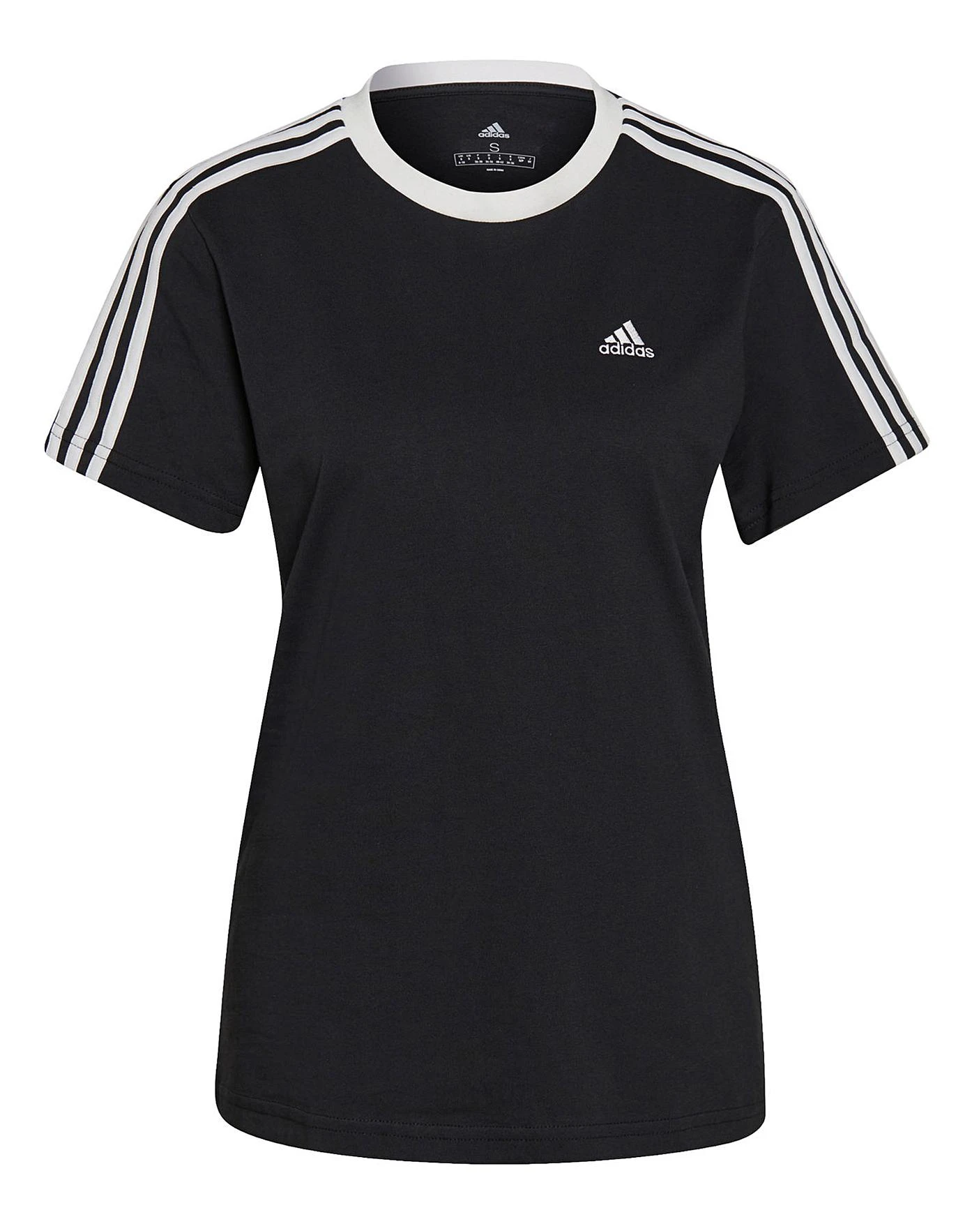 Slip on understated sporty style. Contrast 3-Stripes and a small Trefoil logo keep this comfortable t-shirt authentic. Ribbing on the collar and cuffs. All-cotton jersey makes it feel soft.