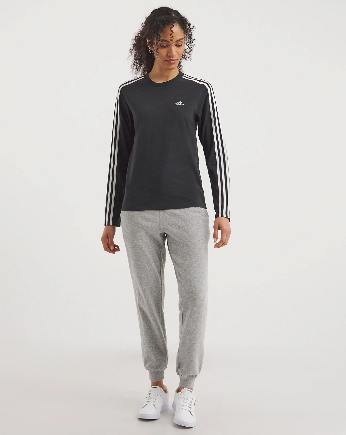 Beat your personal best. Up the weight on your leg presses. You’ve got a lot of goals. But when rest day comfort is your goal, reach for this sporty adidas long sleeve t-shirt. Throw it on to go out with friends or catch up on your favourite shows. No matter how you choose to rest up and rejuvenate, the soft single jersey fabric will keep things cosy. Our cotton products support more sustainable cotton farming.
