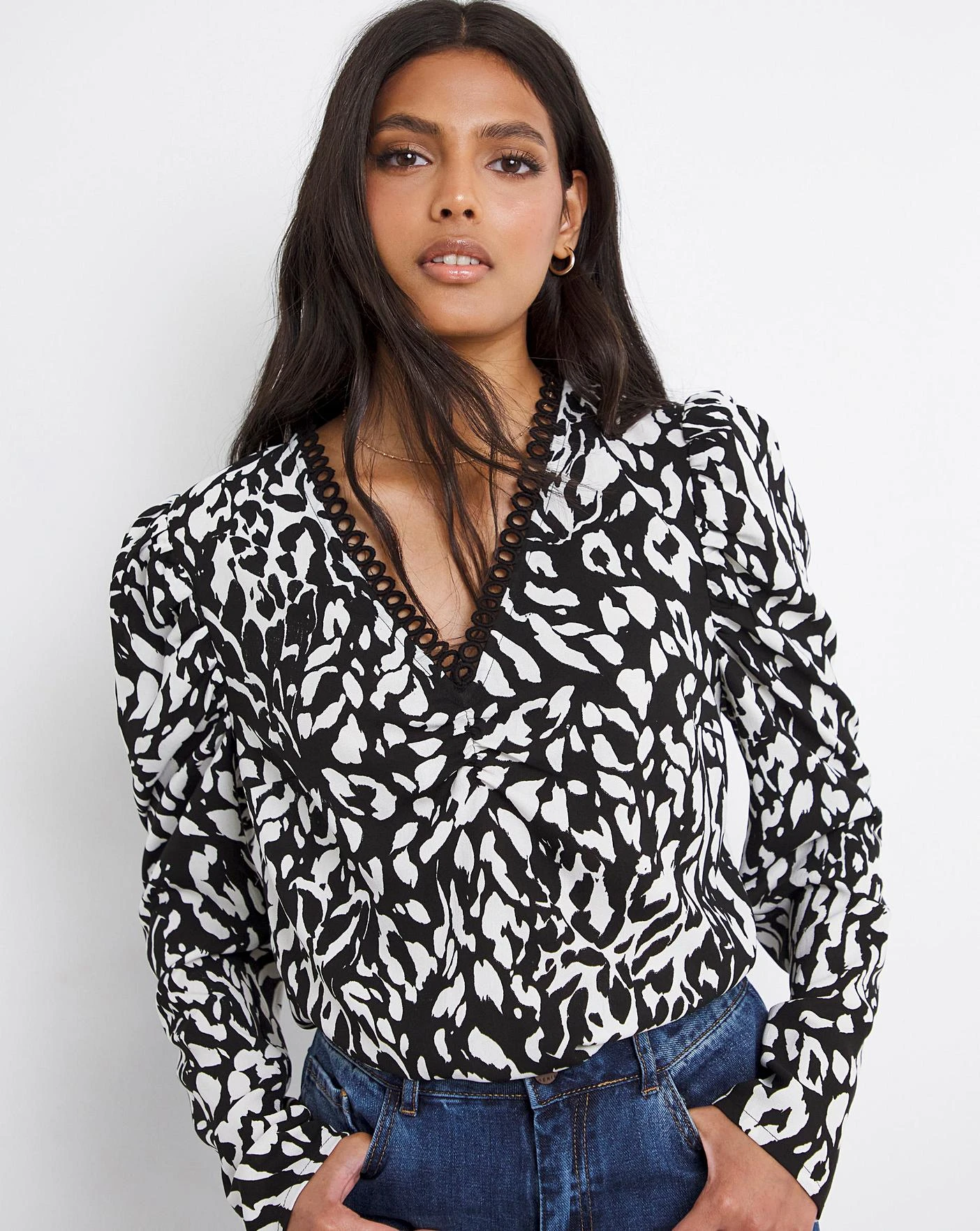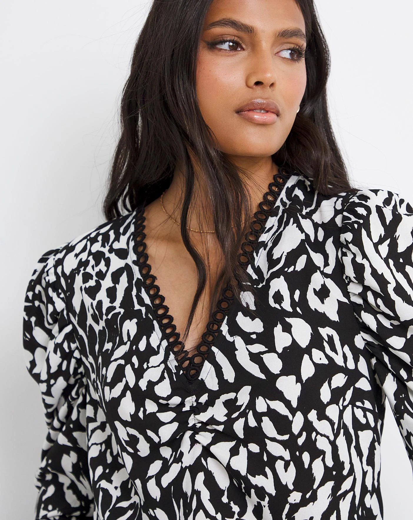 Animal Print Lace Trim Top