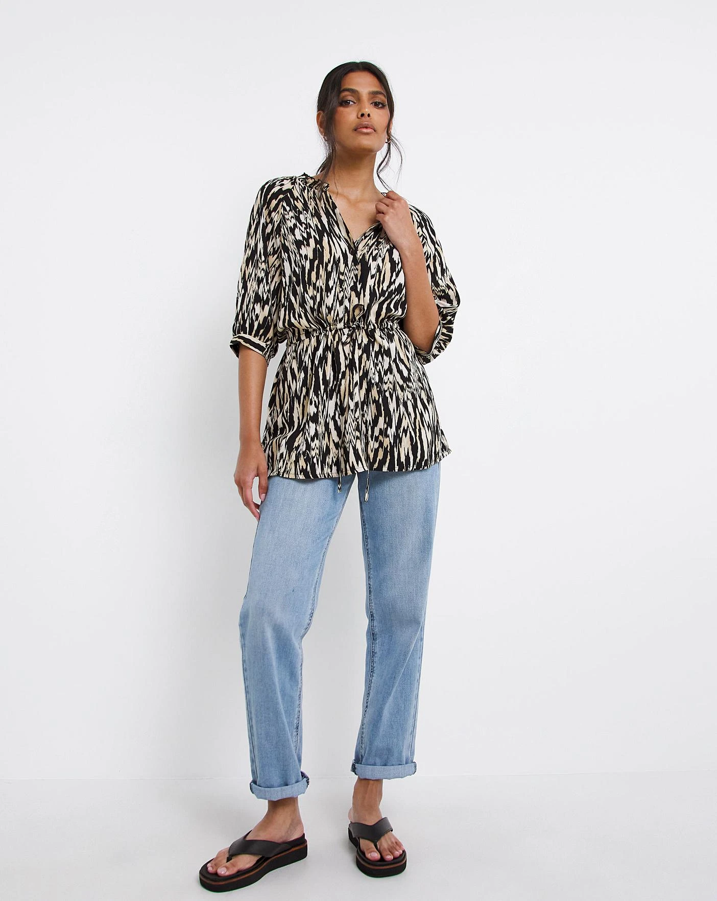 Our tie waist top comes in a flattering print and offers the perfect piece to complete your daytime look. In a relaxed fit, pair easily with jeans and flats of your choice.