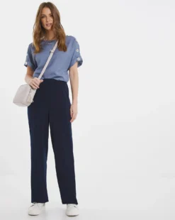 These straight leg trousers are a wardrobe essential for the spring summer season. In a new and improved stretch fabric, these trousers are designed to move with and respond to your curves. Featuring a hook and eye fastening, belt loops and a side-back elastic waistband for a better fit and improved comfort. Pair back with our matching Single Breasted Blazer for a look to take you from desk to dinner.