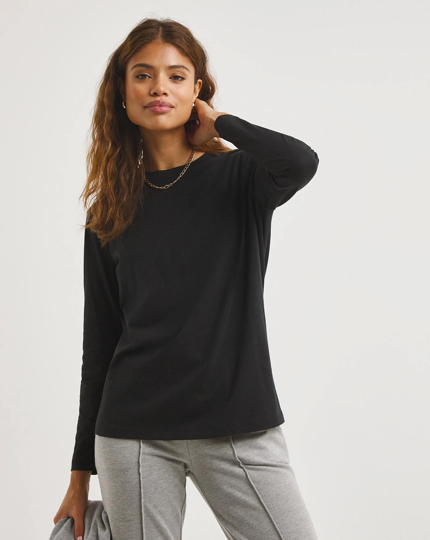 An essential basic for your wardrobe, our crew neck t-shirts slot easily into your rotation. Ideal for every day wear, these t-shirts are in a soft and comfortable cotton and have long sleeves which are perfect for the colder weather. Easy to style and so versatile, wear this top with a pair of jeans and trainers for a laidback look that is casual yet stylish. Find this top in a variety of gorgeous colours to fill your wardrobe.