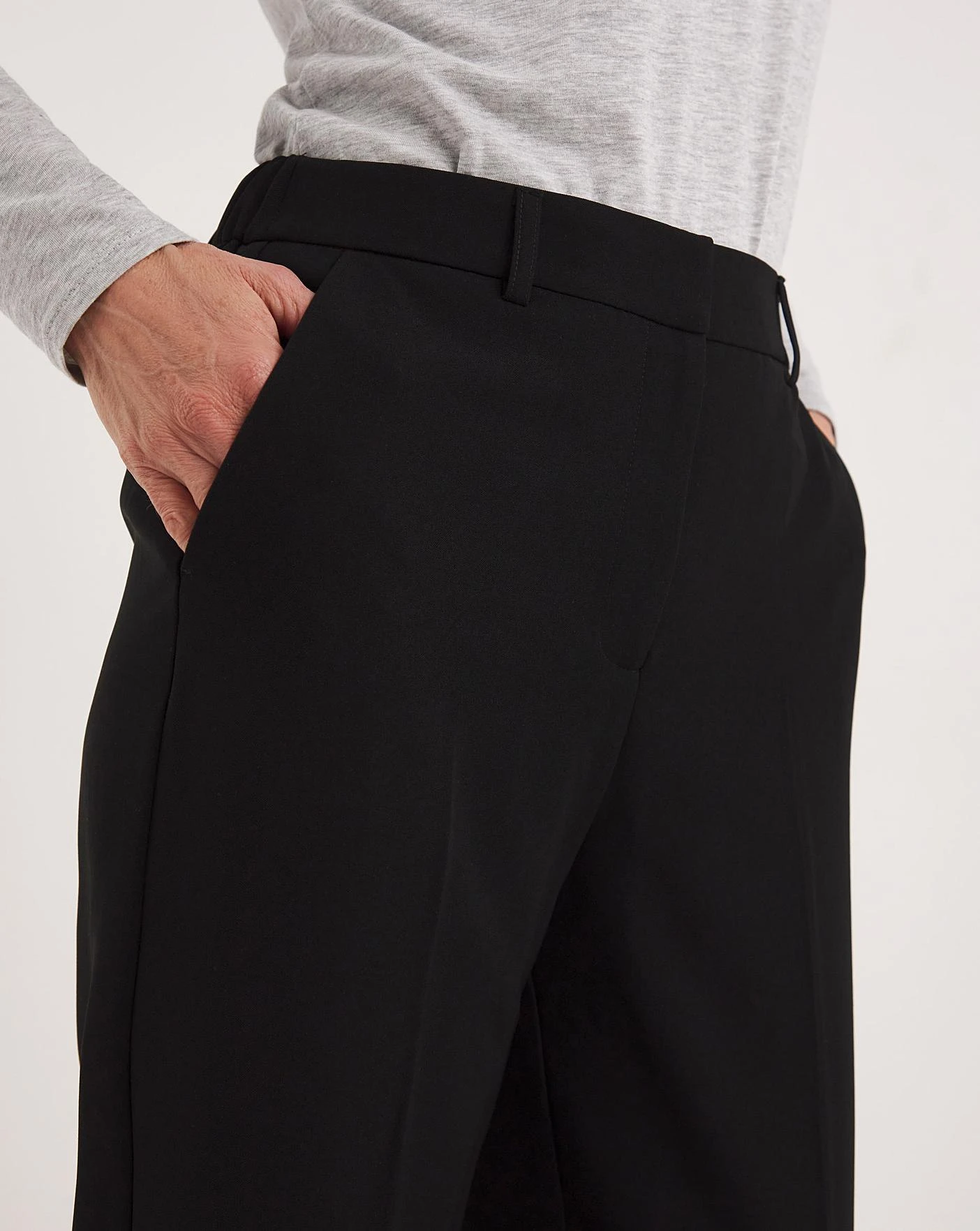 These wide leg trousers are a must have workwear staple to add to your wardrobe. In a new and improved stretch fabric, these trousers are designed to move with and respond to your curves. Featuring a hook and eye fastening, belt loops, turn up hem and a side-back elastic waistband for a better fit and improved comfort. Available in three leg lengths, find your perfect fit here.