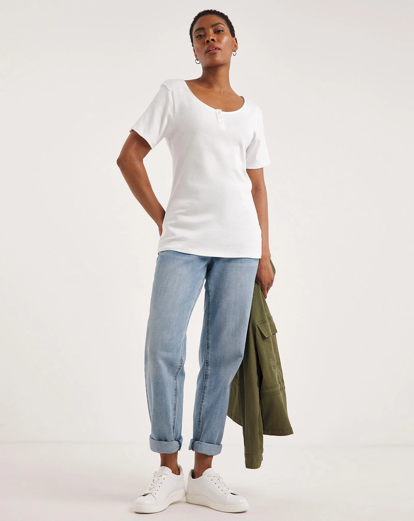 These button trim T-shirts are the ultimate wardrobe essential. The flattering scoop neckline and relaxed fit, allows these tees to be comfortable and versatile. With so many ways to be paired, the styling opportunities are endless, simply pair with your favourite jeans and favourite jacket for a perfect look everytime!