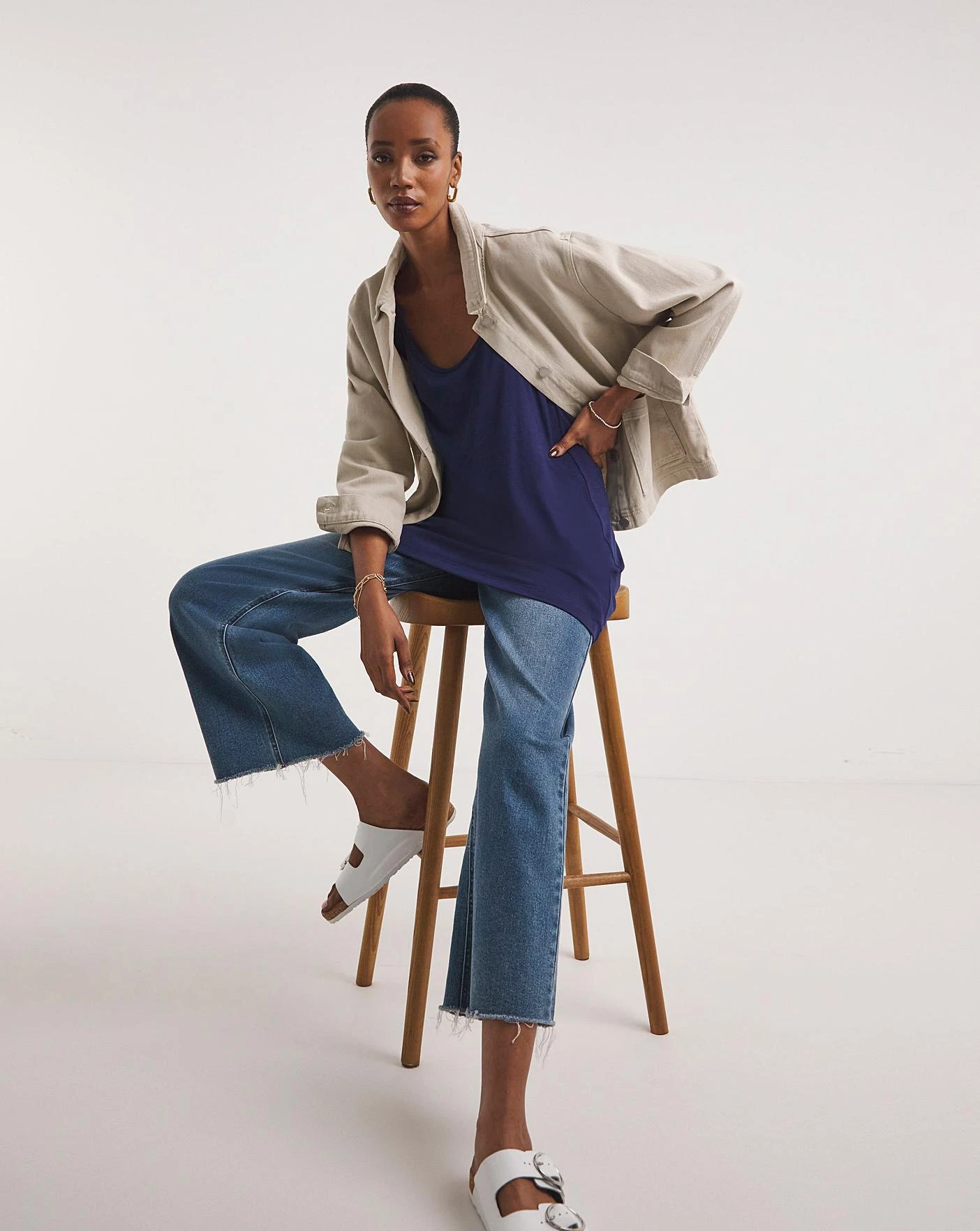 This versatile jersey swing top is the perfect everyday style with its swing shape that flatters and conceals. For a casual yet stylish look, pair with skinny jeans and ankle boots.