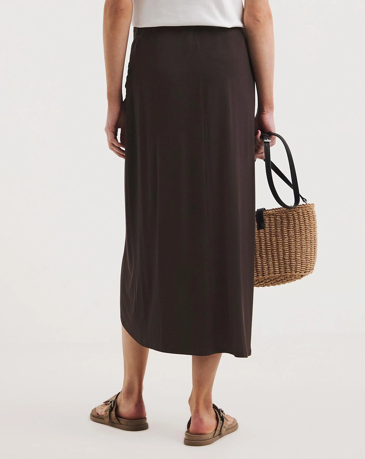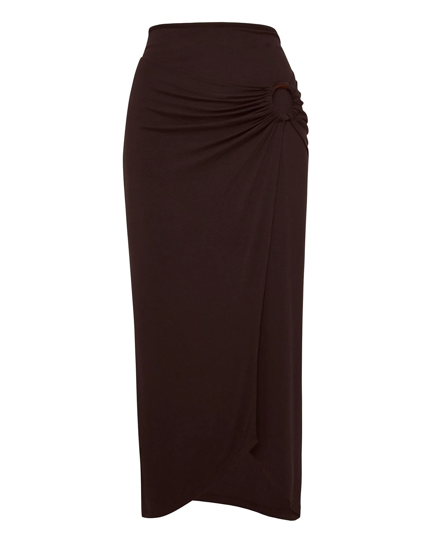 This super stylish and super comfortable Jersey Ring Detail Wrap Skirt is perfect for Summer. Featuring a feminine wrap front in a super flattering slinky jersey material. Pair with sandals and a classic vest top for a classy Summer look.