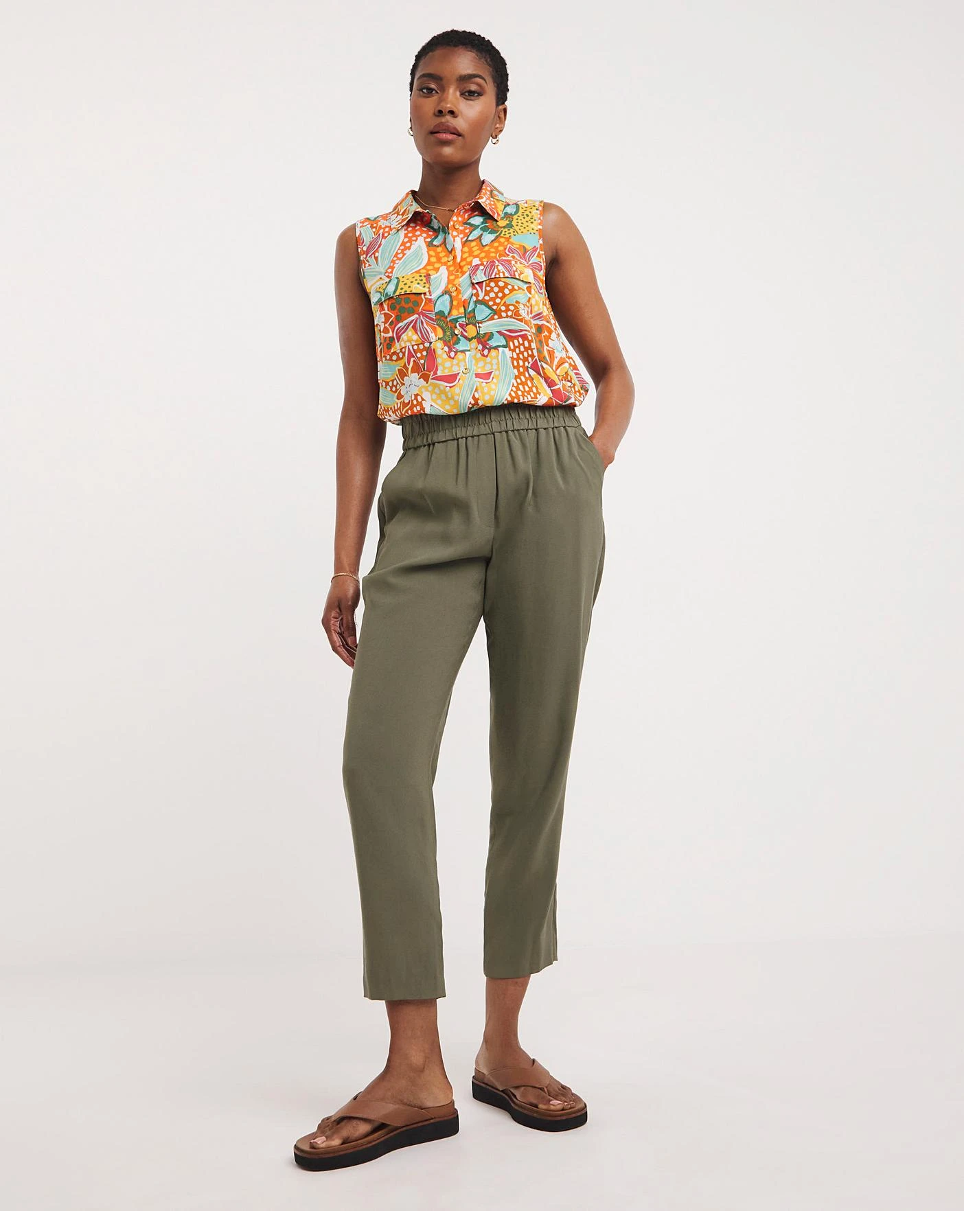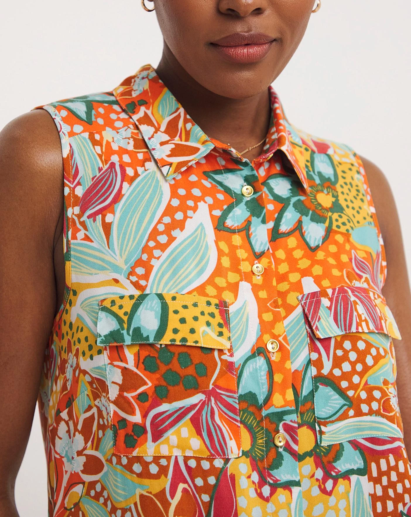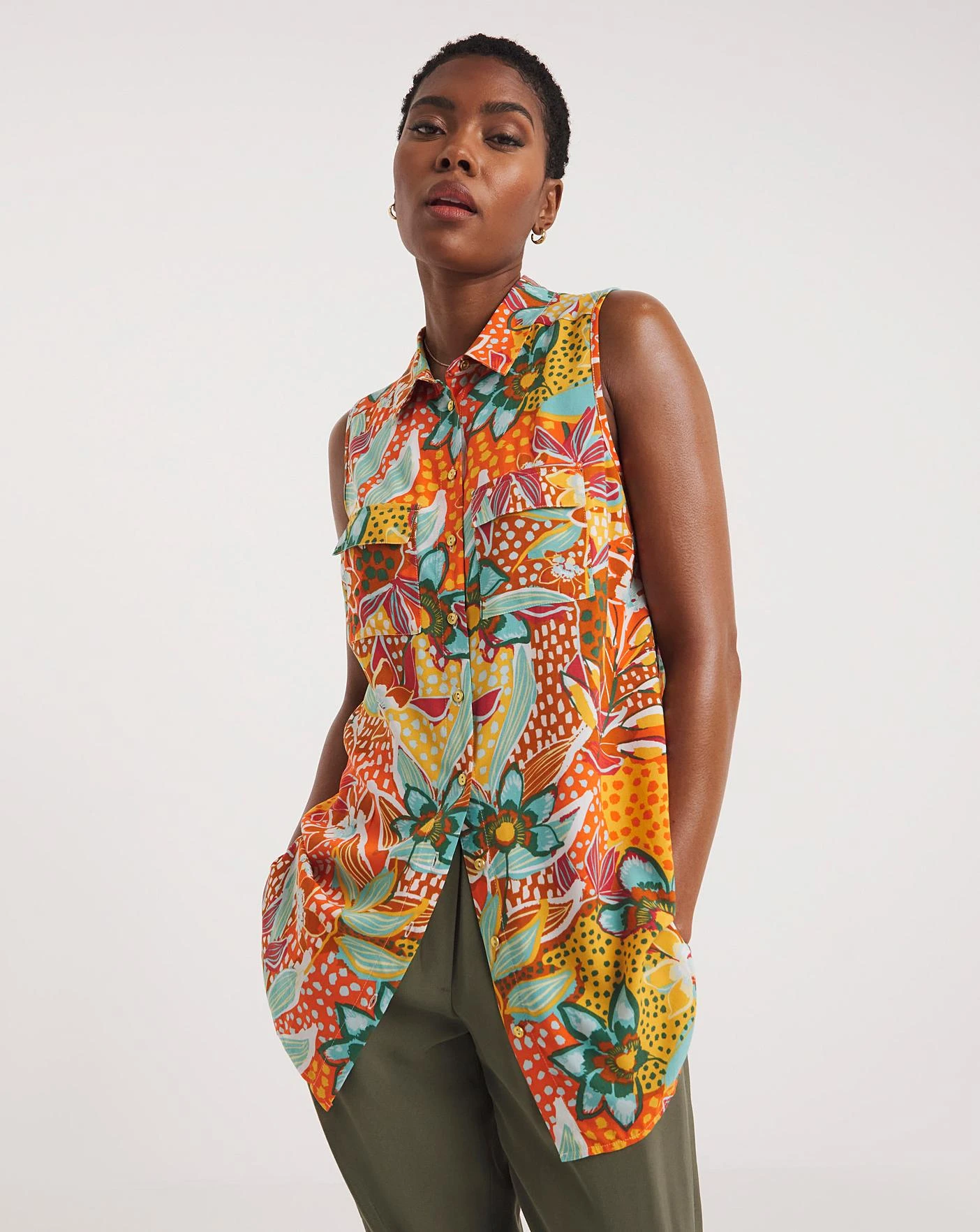 Our dipped back sleeveless viscose shirt is perfect for a Summer’s occasion. In a flattering print, this shirt offers a relaxed fit and can be paired easily with jeans or shorts. This top comes in a none stretch fabric.