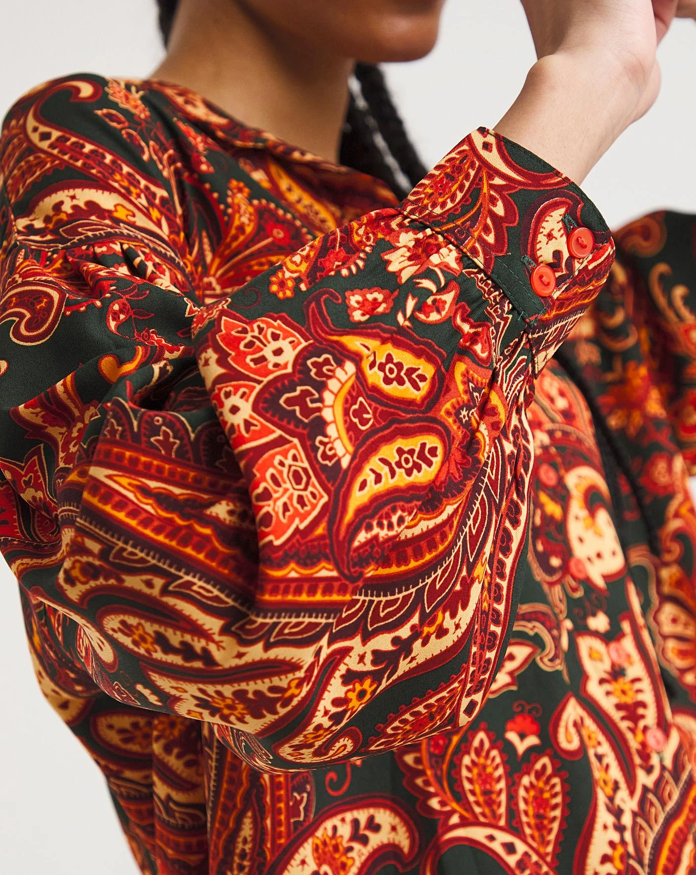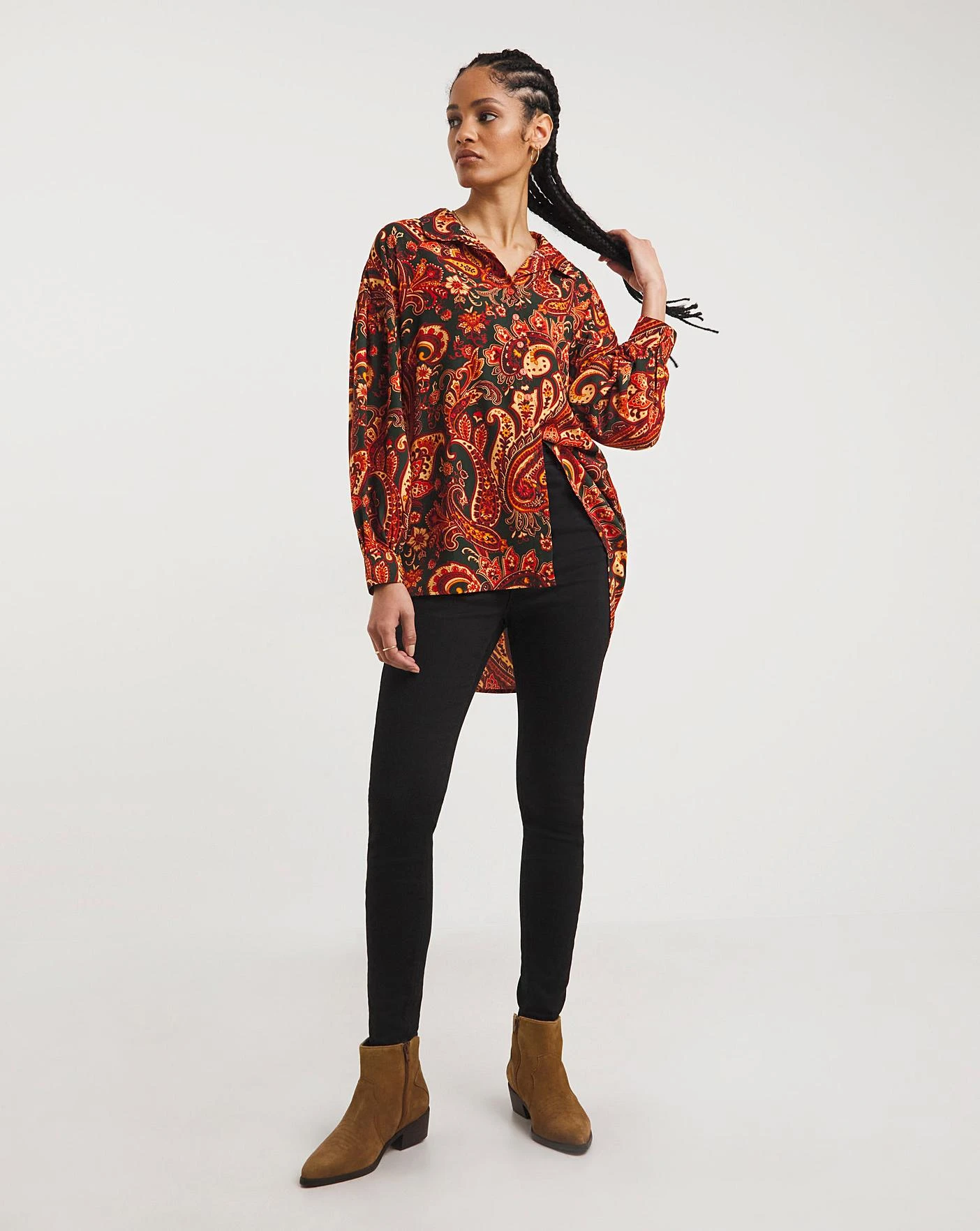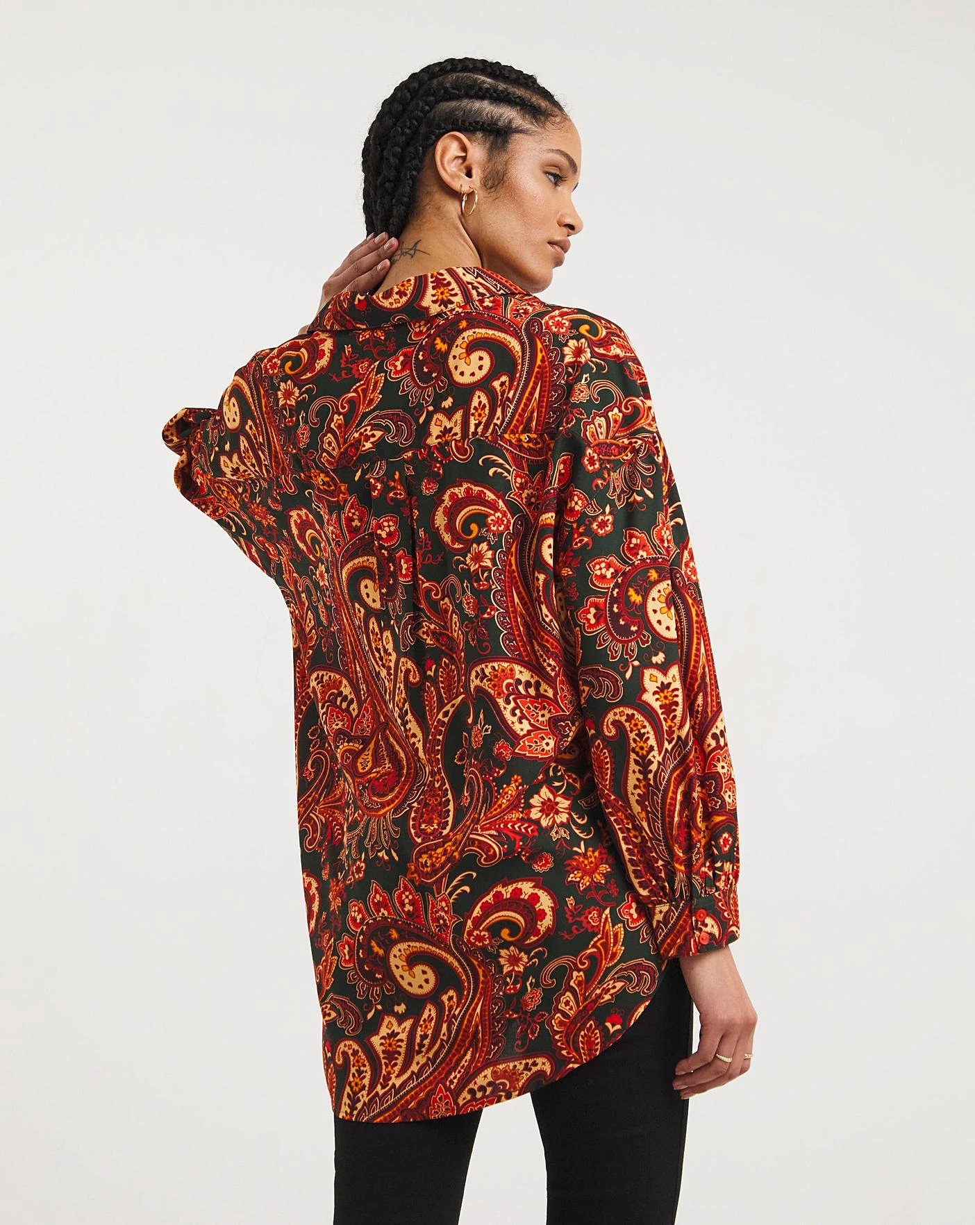 The gorgeous vibrant paisley colour blouse works so well with its striking print – it’s captivating yet classy. Designed in a button-through style and relaxed body fit, this patterned blouse will flatter any body shape.