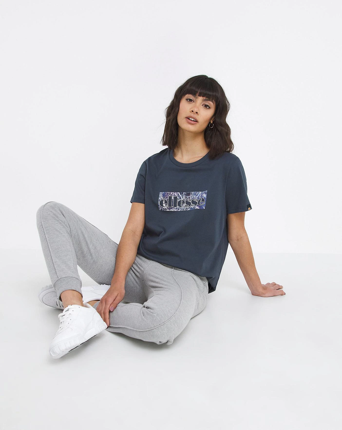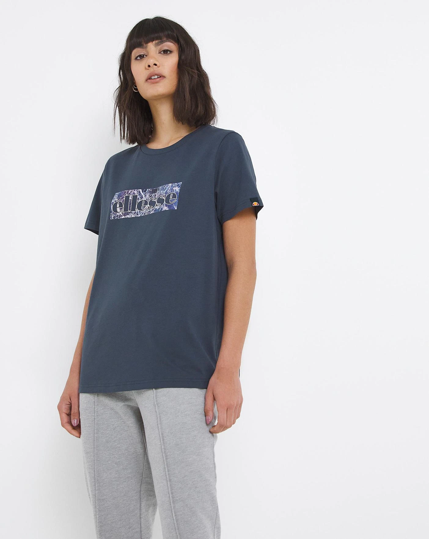 Ellesse Logo Blavina T-Shirt in navy. Featuring crew neckline, large Ellesse logo front branding, short sleeves.