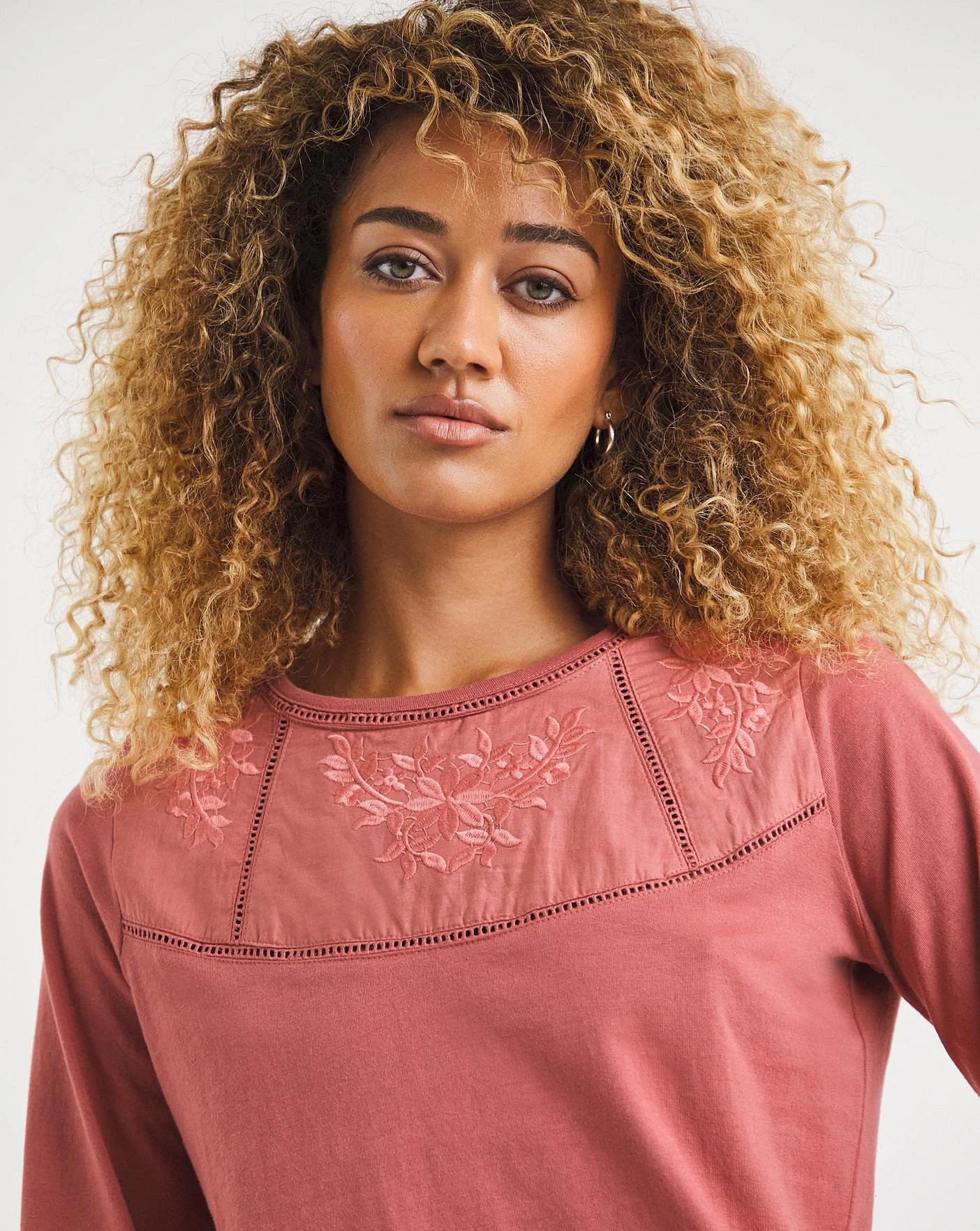 Update your wardrobe with our ladder insert top. The top features ladder trim detailing to the front yoke and neckline. The beautiful embroidery across the yoke adds elegance and class! Pair with jeans for the perfect smart daytime look.