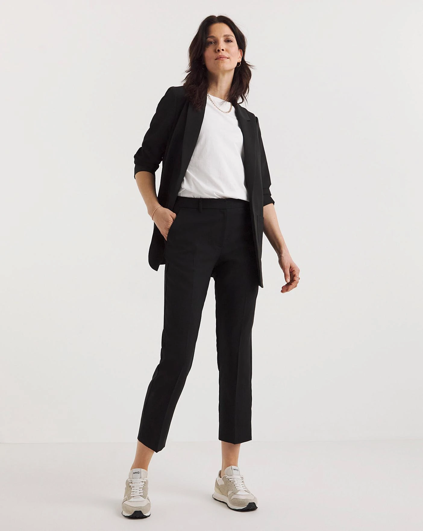 These tapered leg trousers are a workwear wardrobe essential. In a new and improved stretch fabric, these trousers are designed to move with and respond to your curves. Featuring a hook and eye fastening, belt loops. Available in a regular and short leg lengths. Find your perfect fitting trouser here.