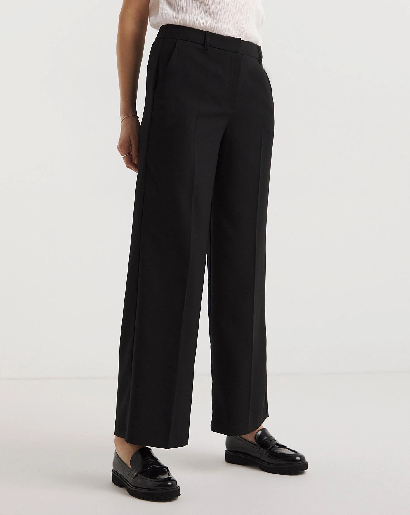 In a flattering wide leg shape, these trousers are a true wardrobe essential. These trousers give any outfit a contemporary, sleek finish.