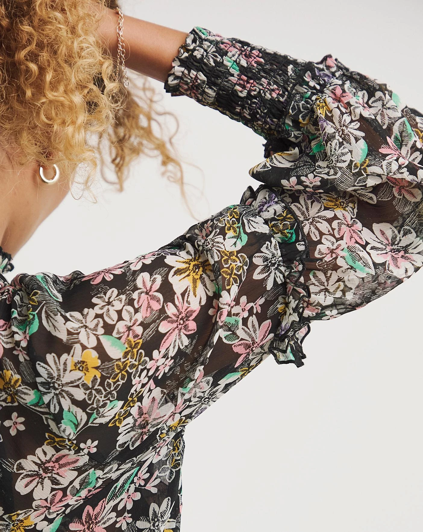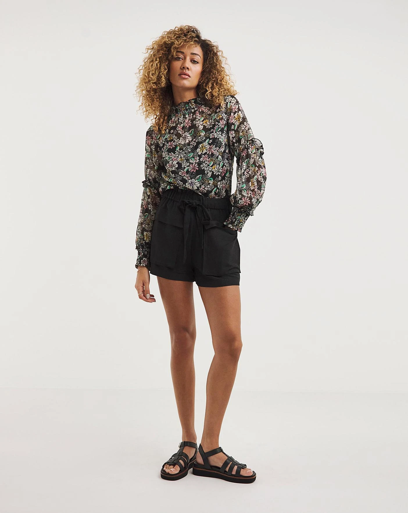 Our shirred detail blouse is a great stape day time piece that can be paired perfectly tucked in or out of jeans. This top features a nice shirred detail on the sleeves and is versatile as it can be dressed up or down. Opt for trainers on a casual day or dress up with a pair or boots and leather jacket.