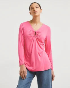 Our fabulous key hole top is stylish yet simple to wear. The top features a flattering and fashionable keyhole detailing to the front. This style looks great dressed up or down!