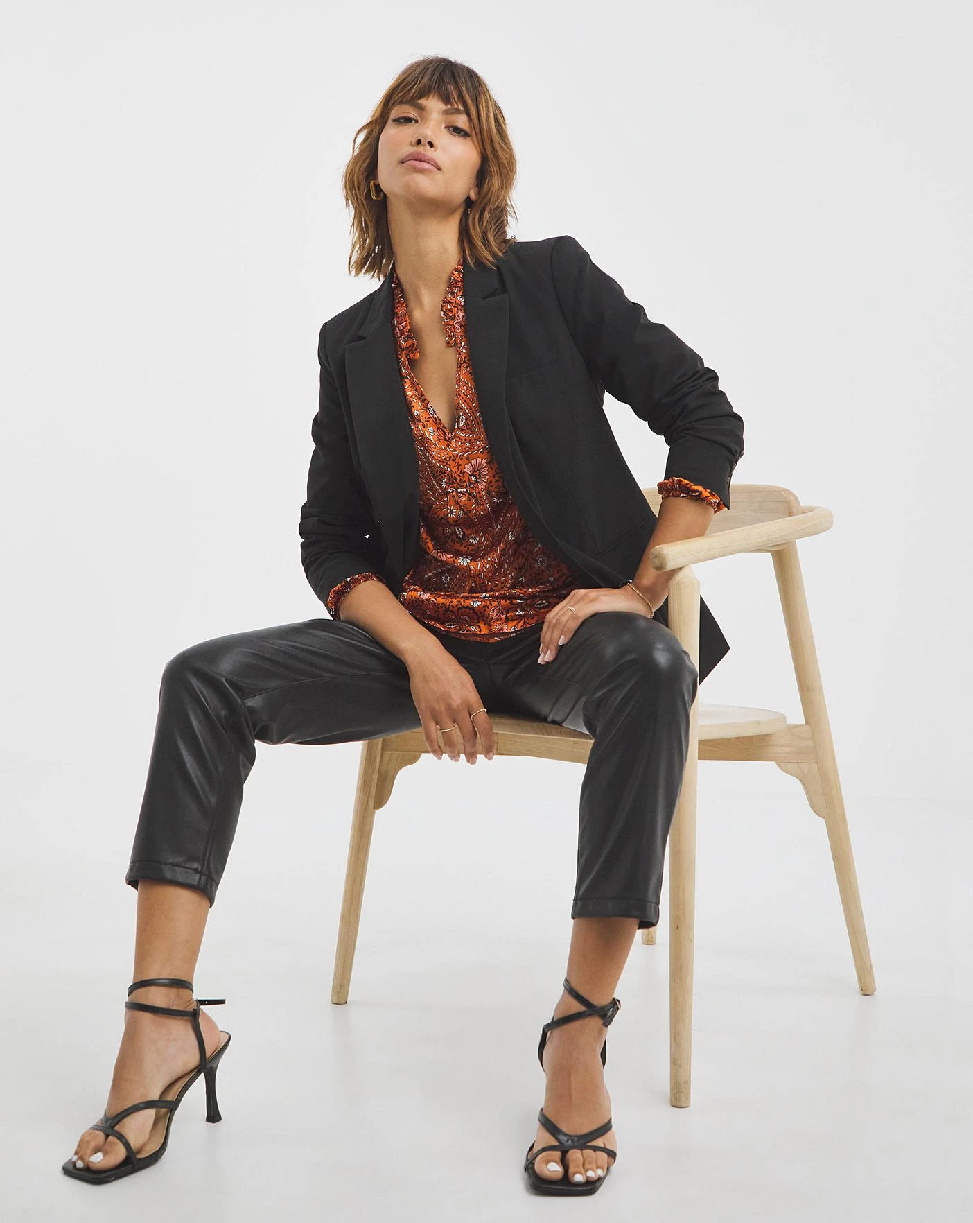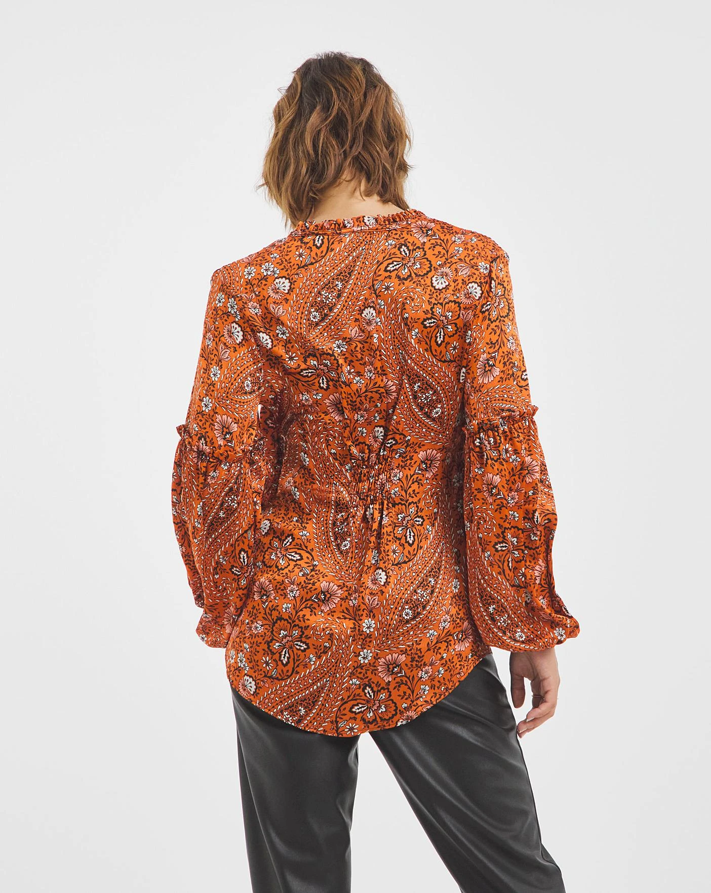 Our Jo Pleat Detail Tunic features delicate pleat details across the sleeves and neckline. In a beautiful, warm, red-toned paisley print, this blouse is designed with a functional v-neck tie to be worn open or closed. Pair with your favourite jeans for a day to night look.