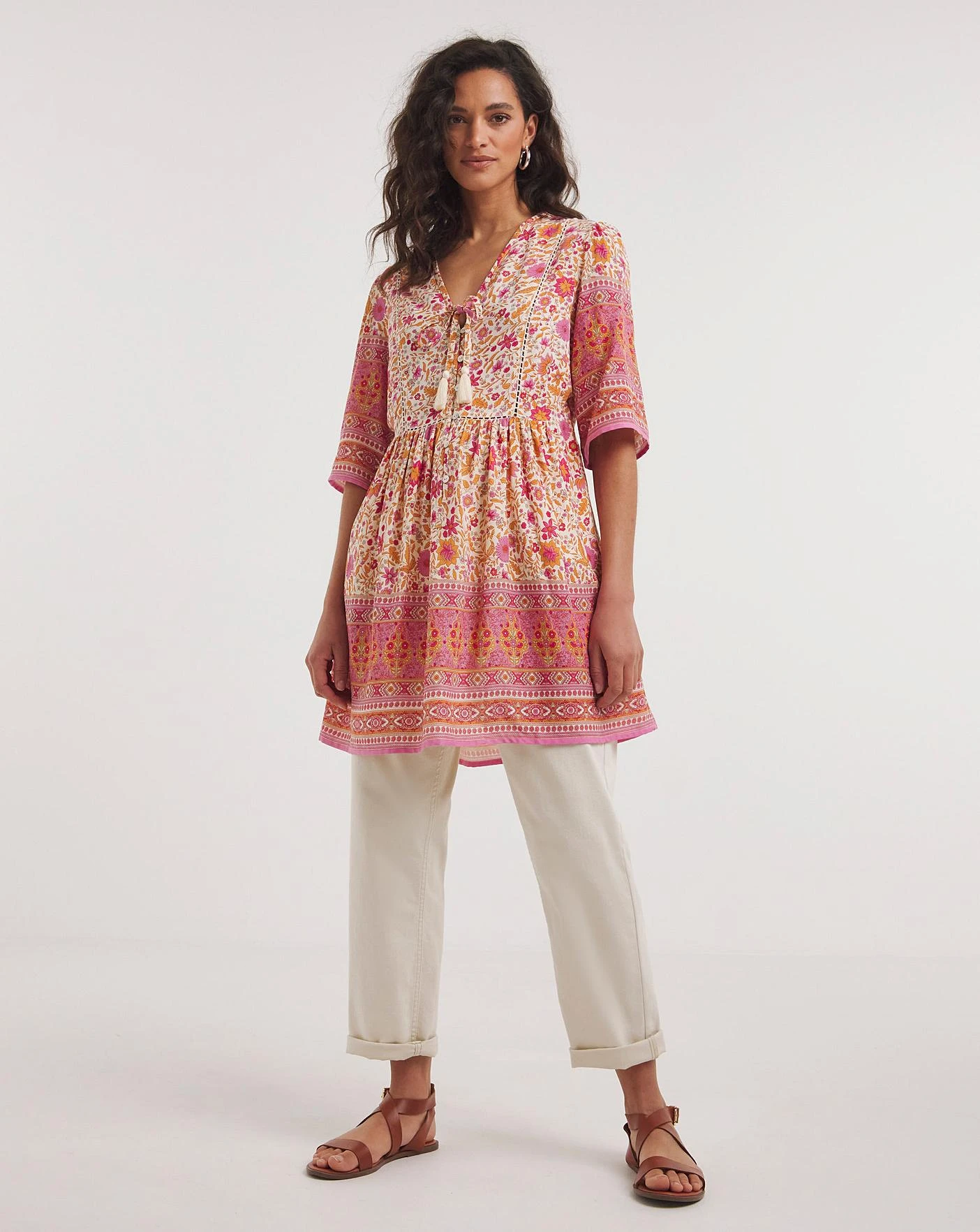 We love boho fashion here at Joe Browns, so we created this tunic to show off our favourite style details. From the gorgeous print and border detail to the lace detailing and tassel trims, this tunic is simply remarkable. In a flattering relaxed fit, it’ll fall beautifully on your figure too, creating a look that you’ll love to flaunt.