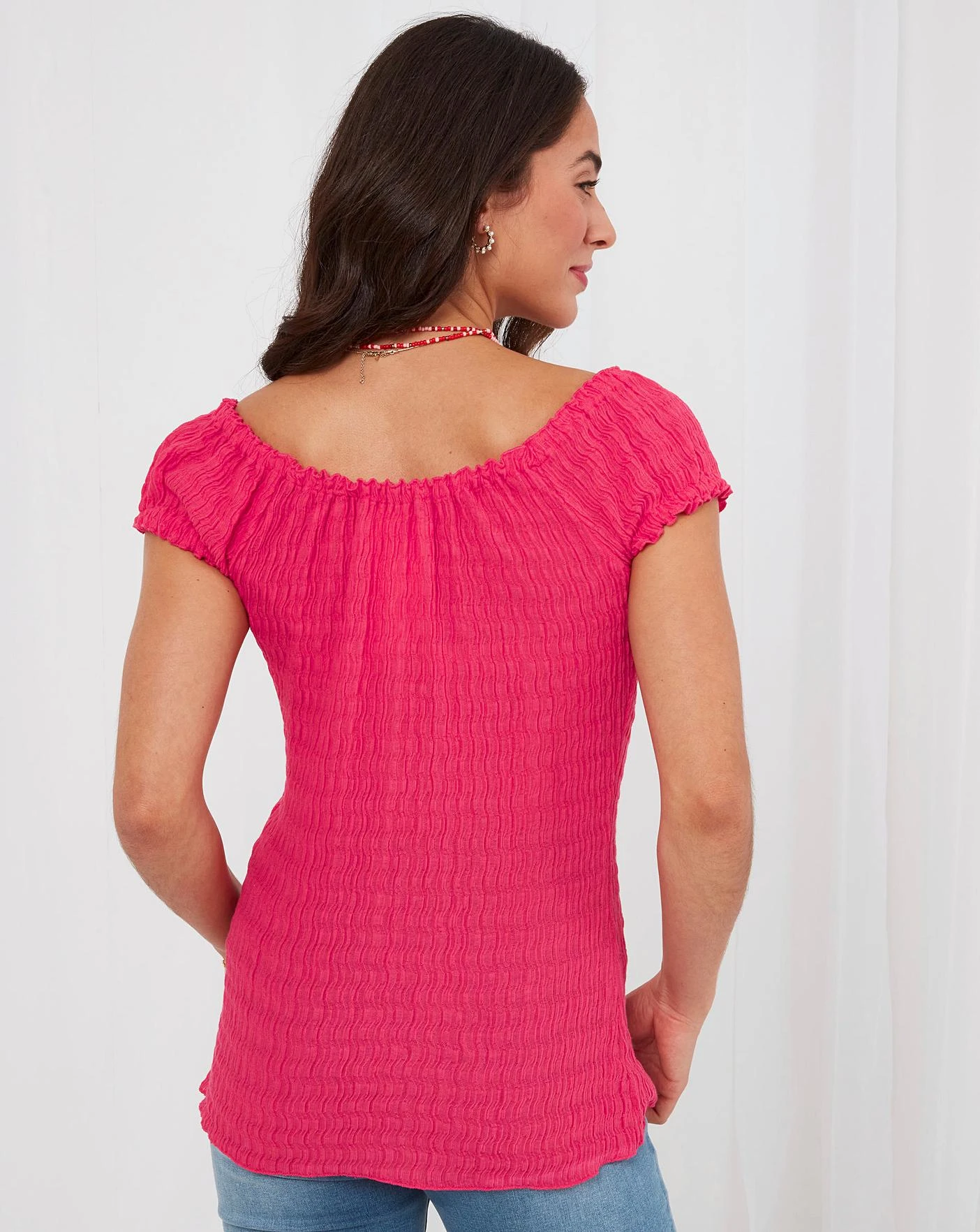 The ultimate wardrobe staple, we love this gorgeous, slim-fit black top. Not only is it crafted from playful textured fabric, but it has pretty puff sleeves too. The best part? You can wear it on or off the shoulder, for a versatile look that’ll take your outfits from day to night.