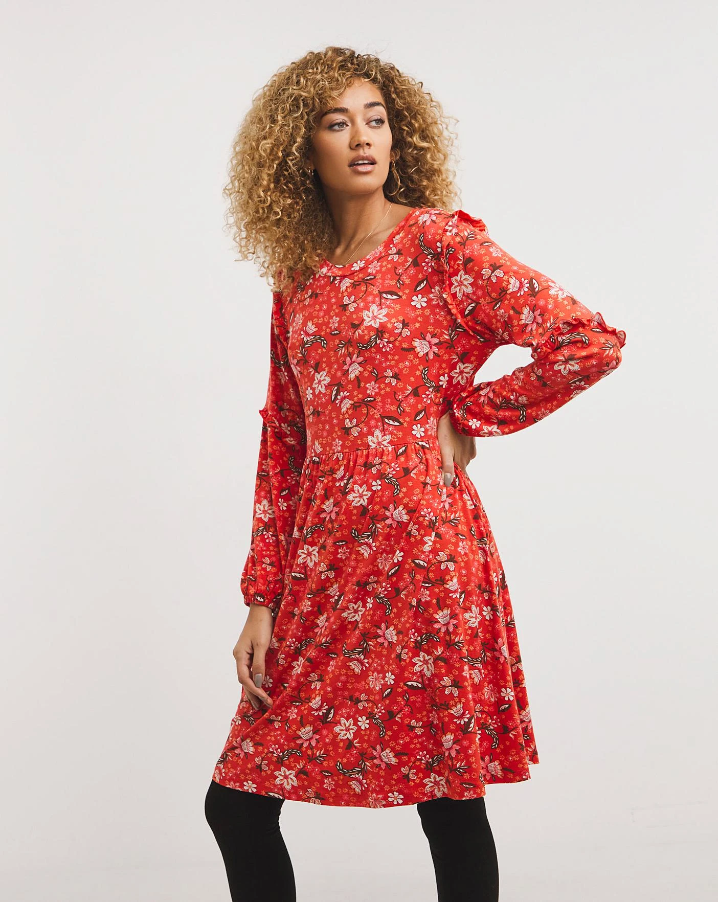 Feel fabulous in this Joe Browns dress! This dress is comfy but does not compromise on design, with a gorgeous frill on the shoulder and a key hole back. Pair this soft stretchy dress with leggings or jeans and top the outfit off with boots for the ultimate look.