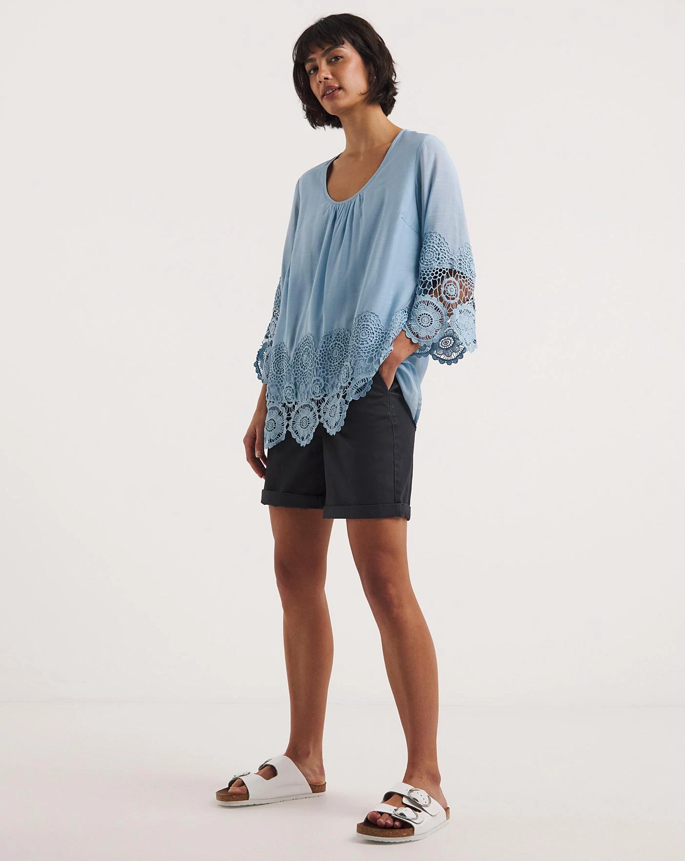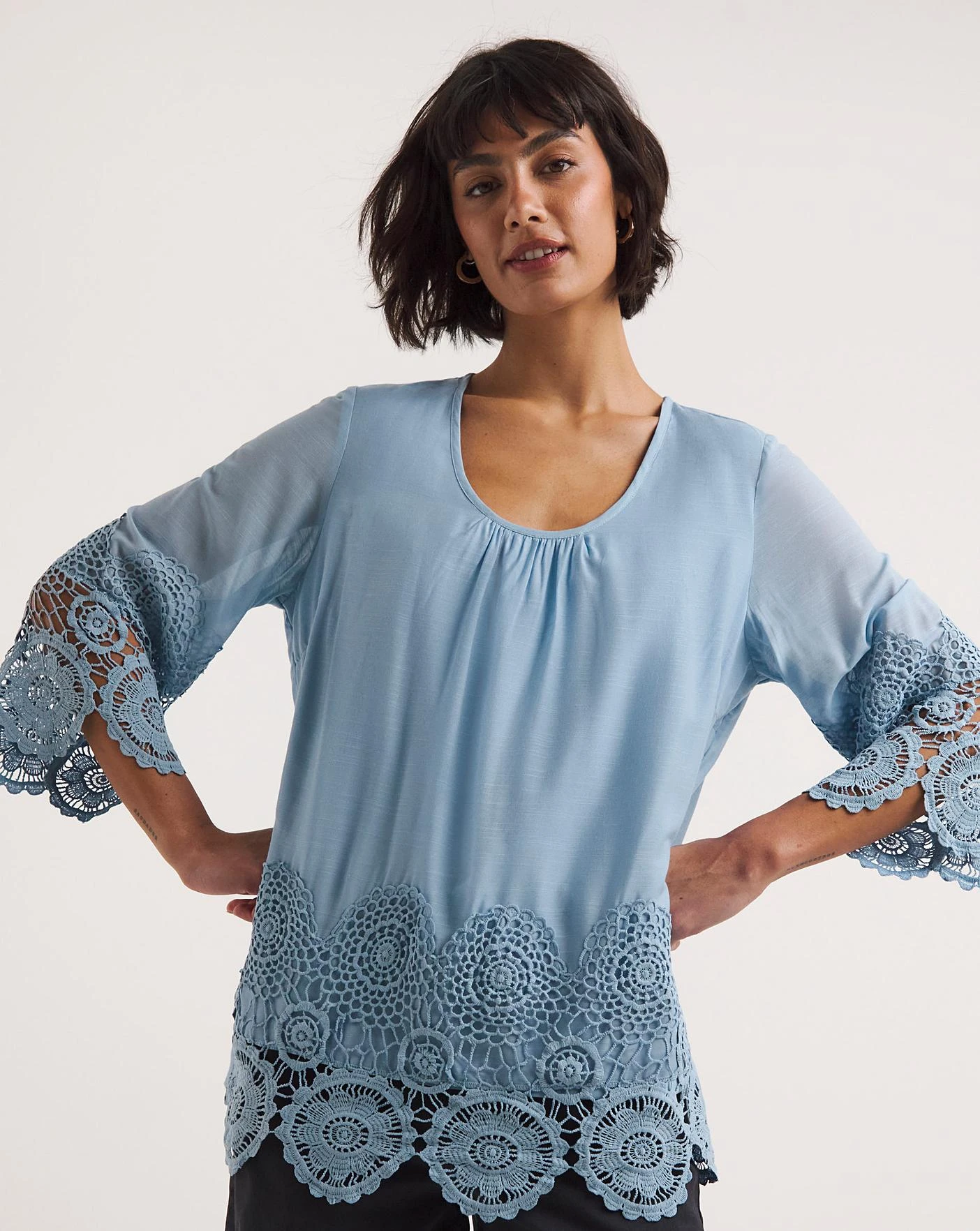 Spring calls for a lovely lace top that can be styled up or down for any occasion. This stunning blue colourway is perfect for any occasion.