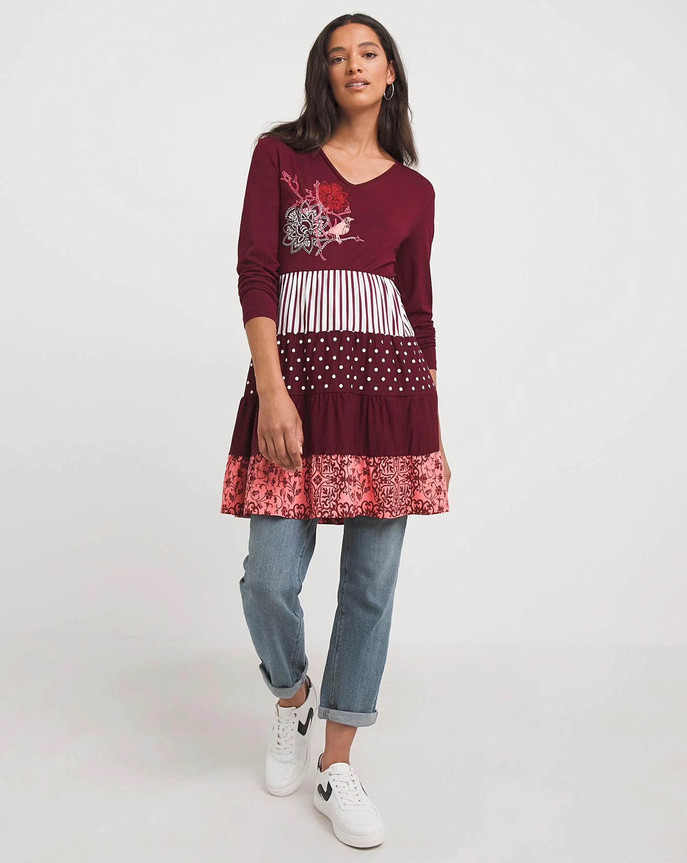 This Joe Browns Mixed Print Tiered Tunic, is the perfect addition to your winter wardrobe. Featuring a tiered design with mutliple different prints, to make you stand out this winter. In our new red colourway, in the most flattering jersey fabric.