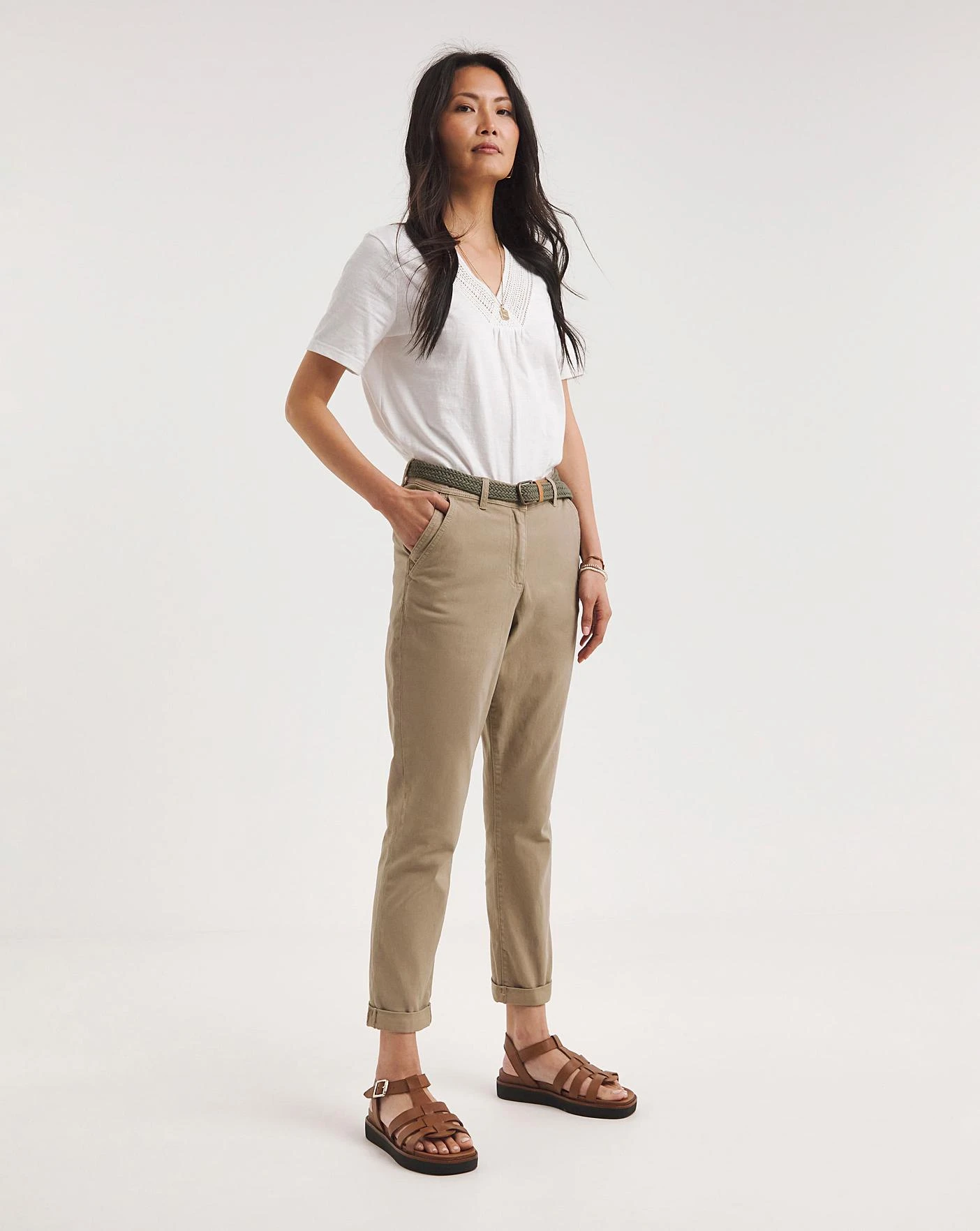 A classic pair of Julipa chinos with a twist, featuring a super soft stretch fabric for comfort. Designed with a double pocket and cross back belt loops for added detail. The chinos come with the detachable plated belt so you can style your way.