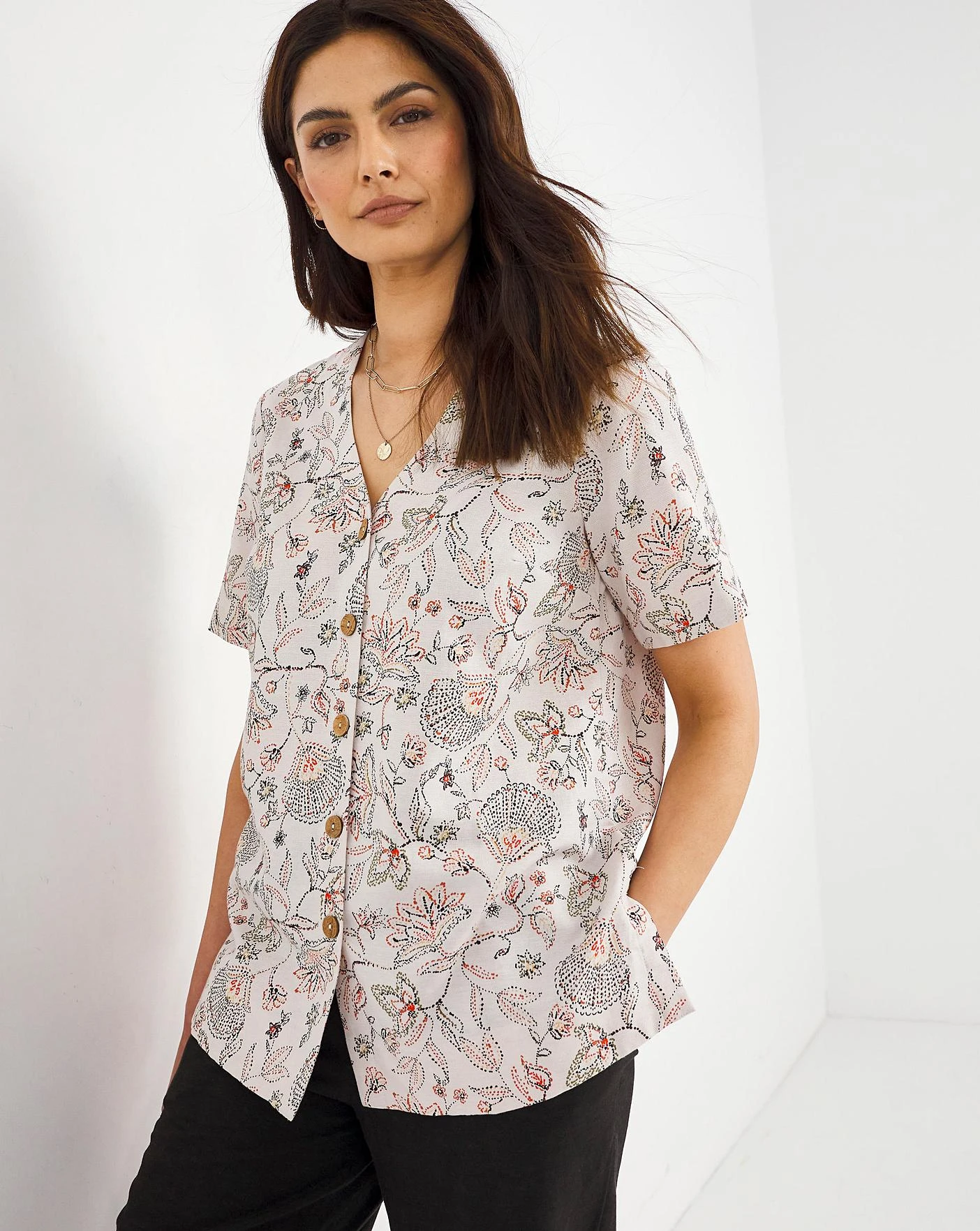 Stay cool with this Julipa linen blouse. This button down shirt is made in a comfortable linen fabric that is perfect for the summer months. Pair with shorts or jeans.