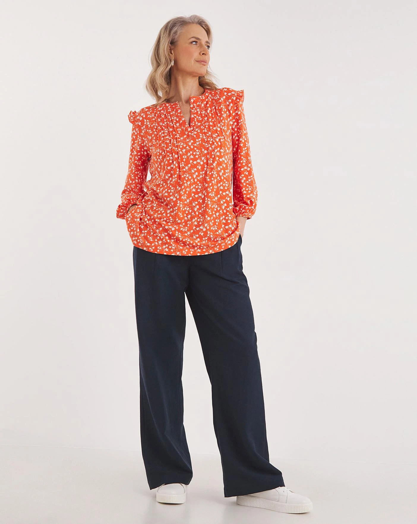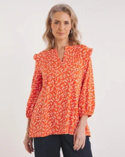 This jersey top will be a stand out piece in your spring wardrobe. The balloon three quarter length sleeves and pintuck detailing around the neckline add a beautiful feminine touch.