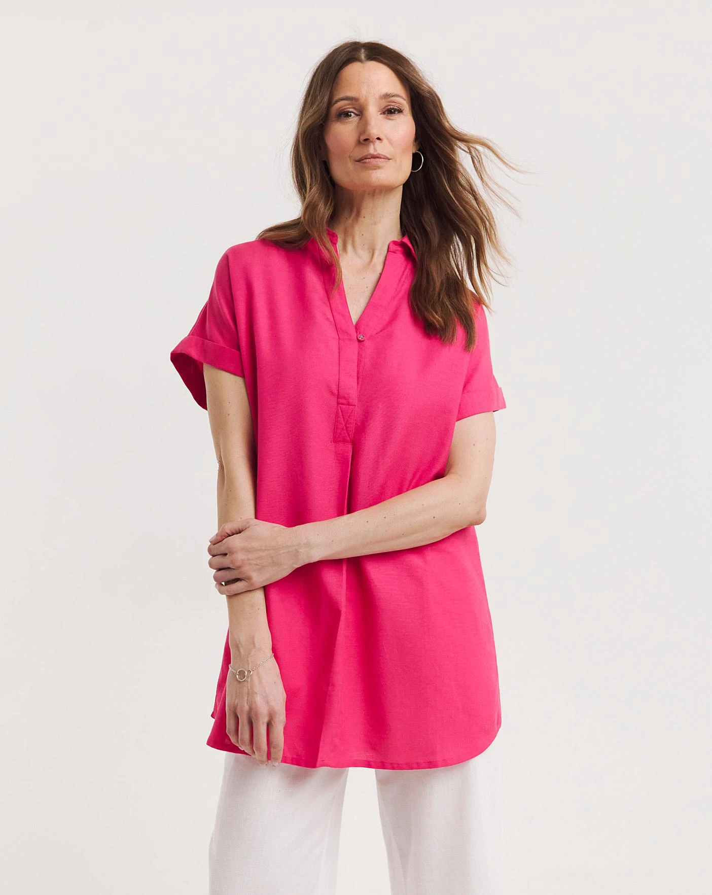 In our brand new shape for the season, this linen tunic features short sleeves and a button placket. Designed in a bright stand out colour, this tunic is perfect for pairing over anything. Made from a more sustainable linen fabric.