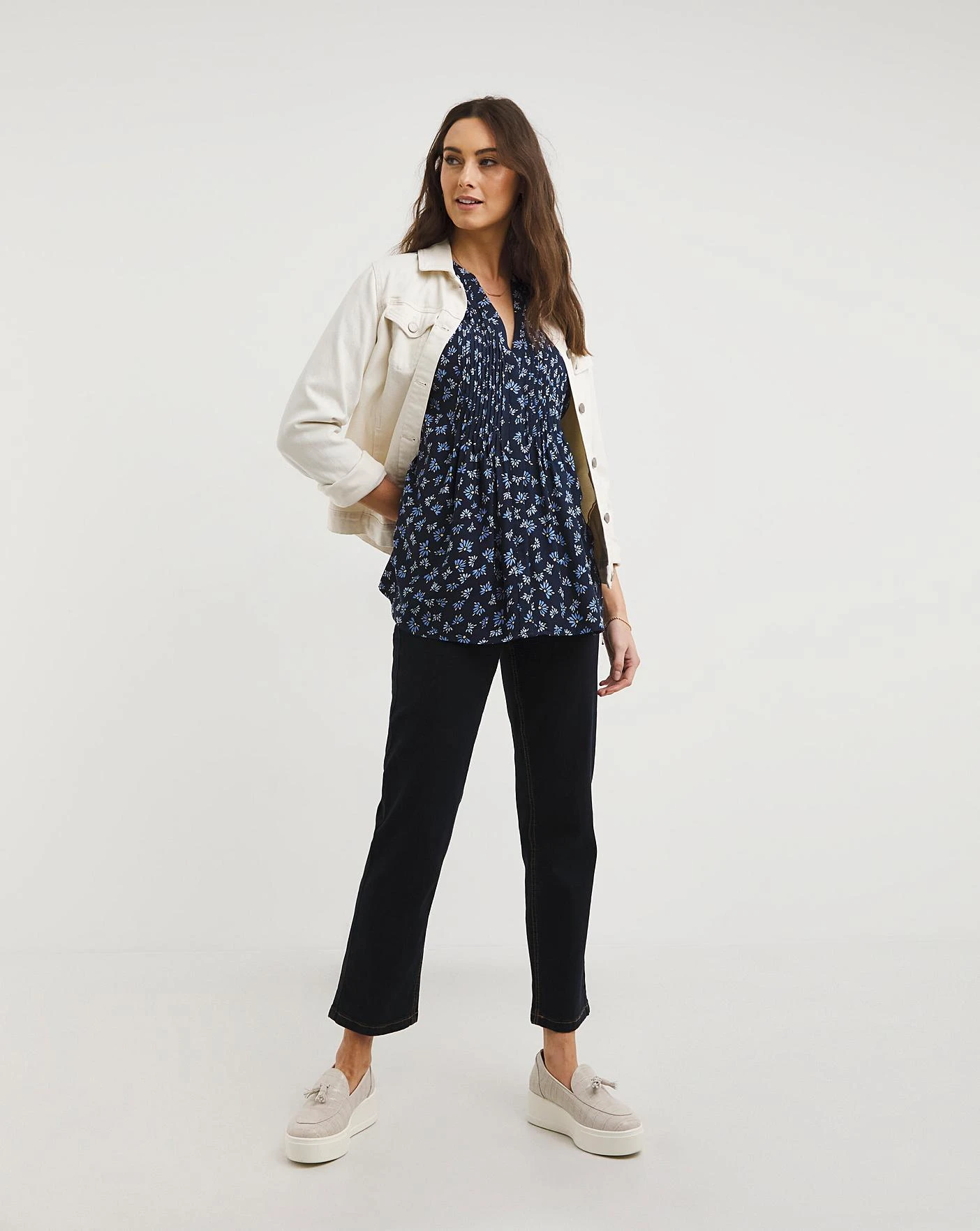 In our best selling shape, this stylish pintuck blouse will be a great everyday piece to add to any outfit. Featuring a notch neckline, three quarter length sleeves and pintuck detailing down the front.