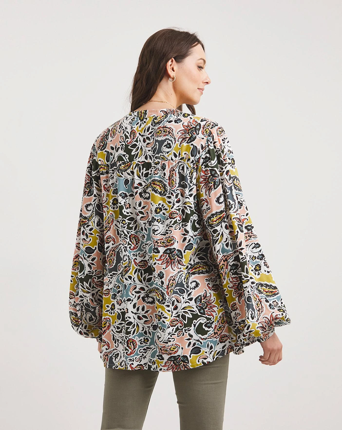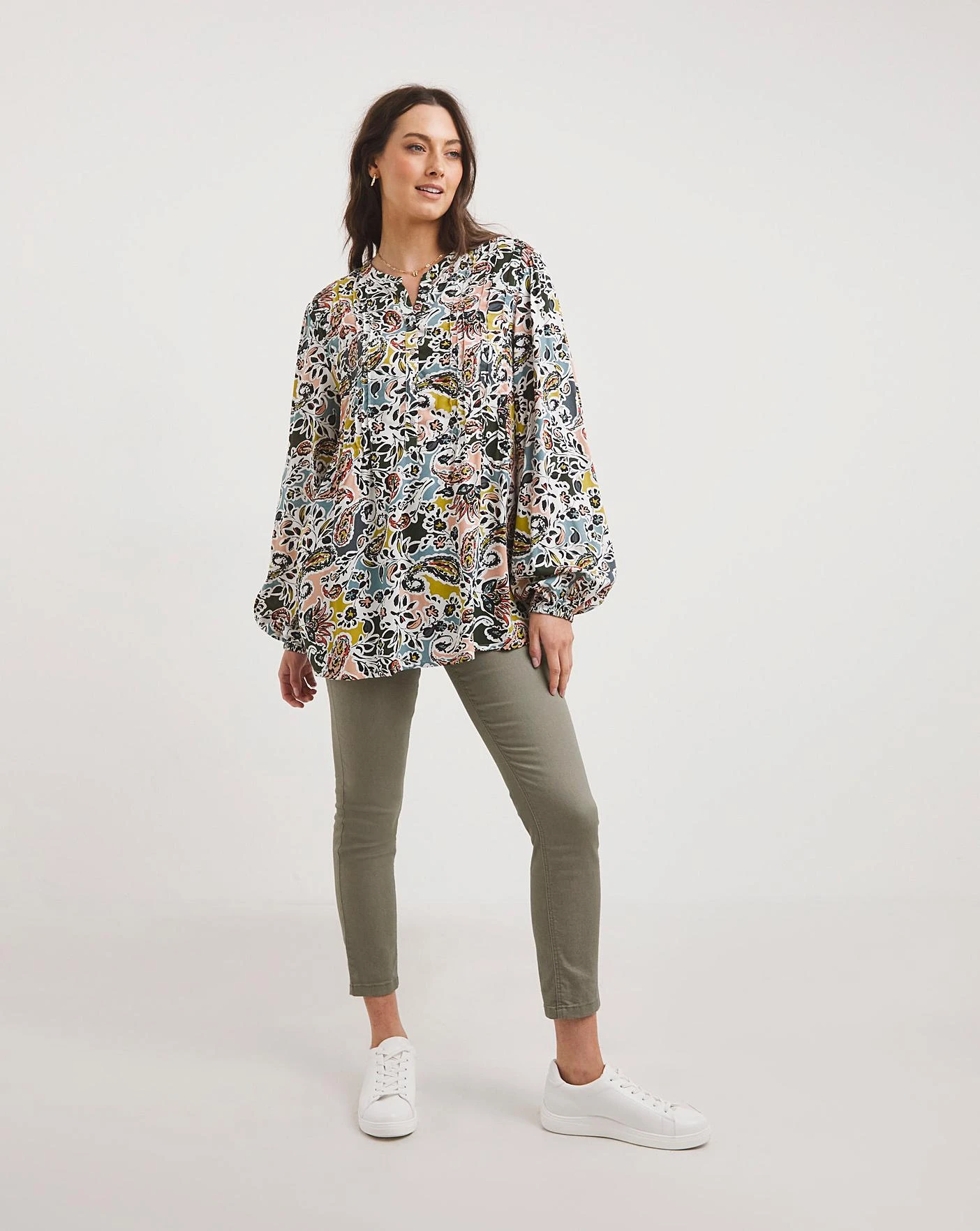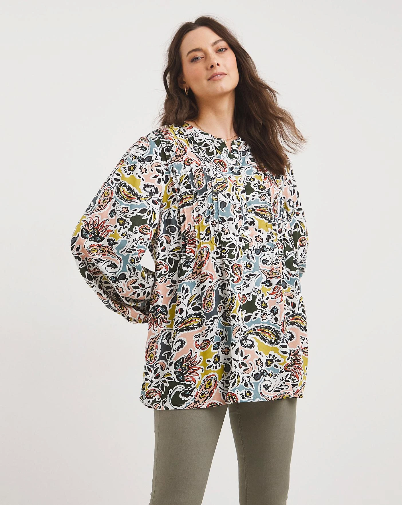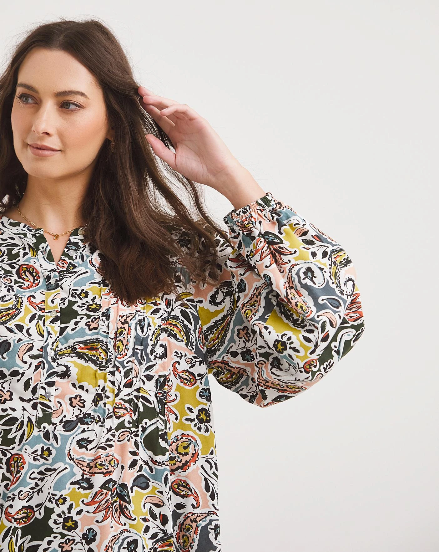 Made in a light weight sustainable viscose fabric with long bubble hem sleeves, this printed pintuck blouse is the perfect transitional piece to take you through the change in season.