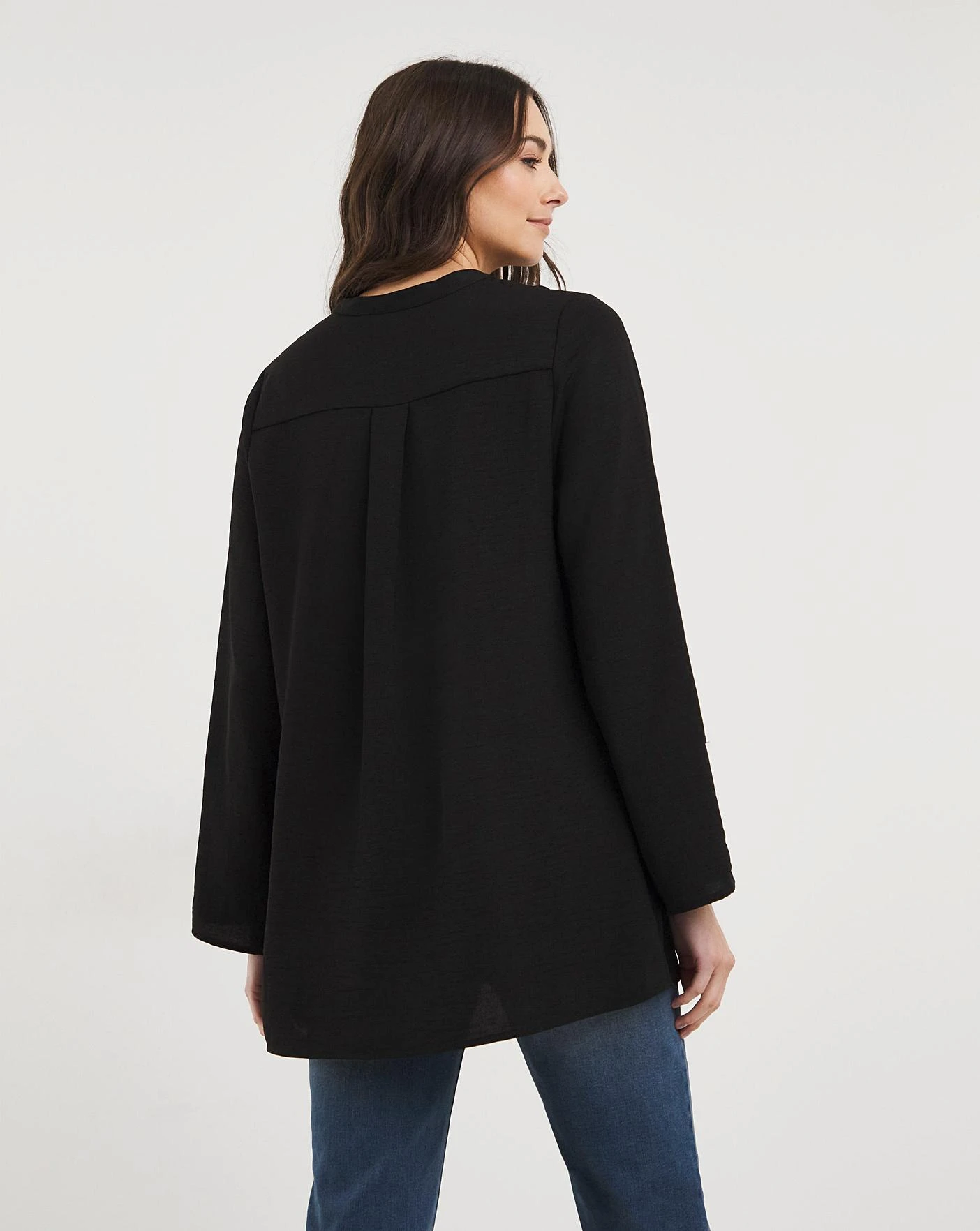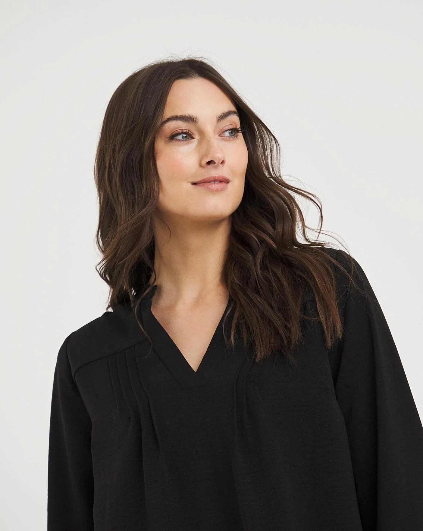 Designed in a easy to wear fabric, this blouse is the perfect throw-on style we reach for on busy and relaxed days. It has a loose-fitting, tunic shape with flattering pintucks down the front. Style yours with skinny jeans for a casual everyday look.