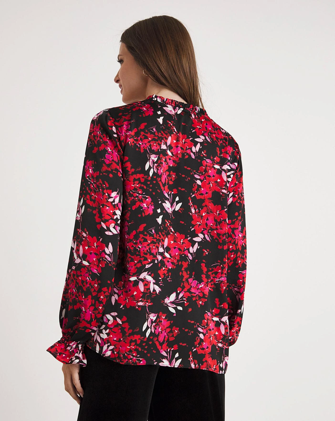 This elegant satin blouse is perfect to be paired with our Julipa black velour trousers for a stylish occasion outfit. The blouse features a small ruffle on the sleeve and a flattering V neckline.