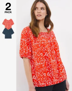 This great value two-pack of gypsy jersey tops features a stunning print and flattering round neck. Made from organically sourced cotton. Perfect for everday wear.