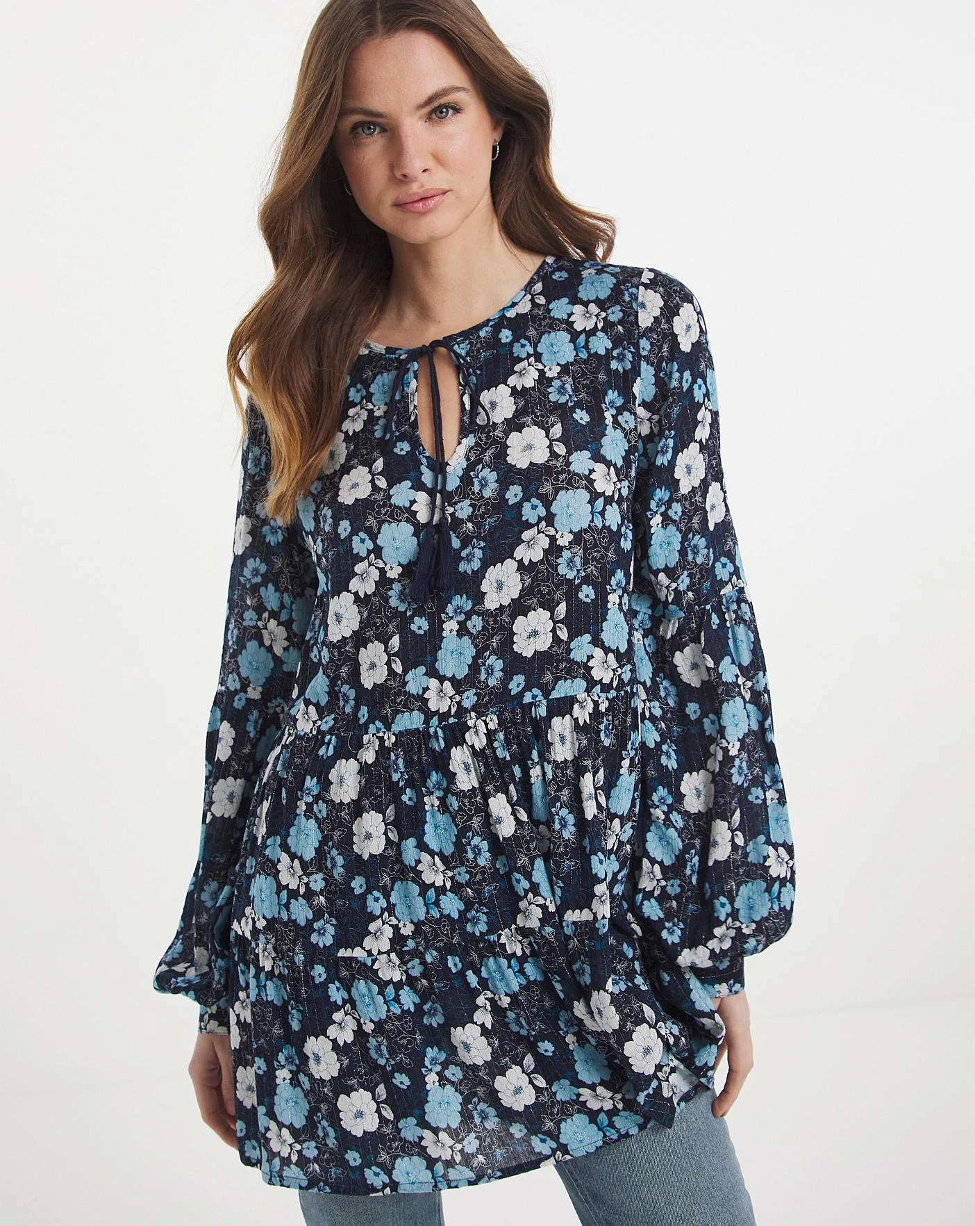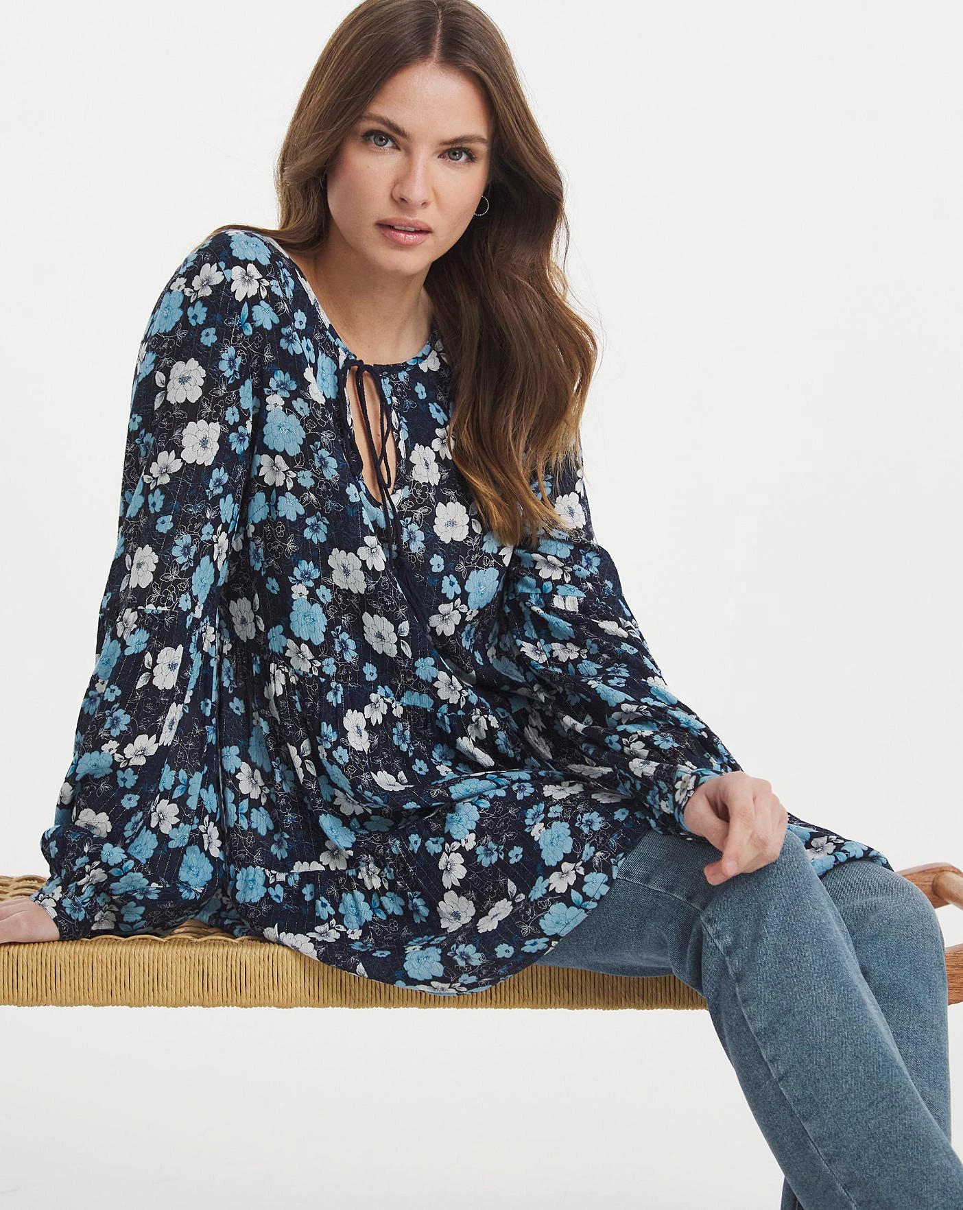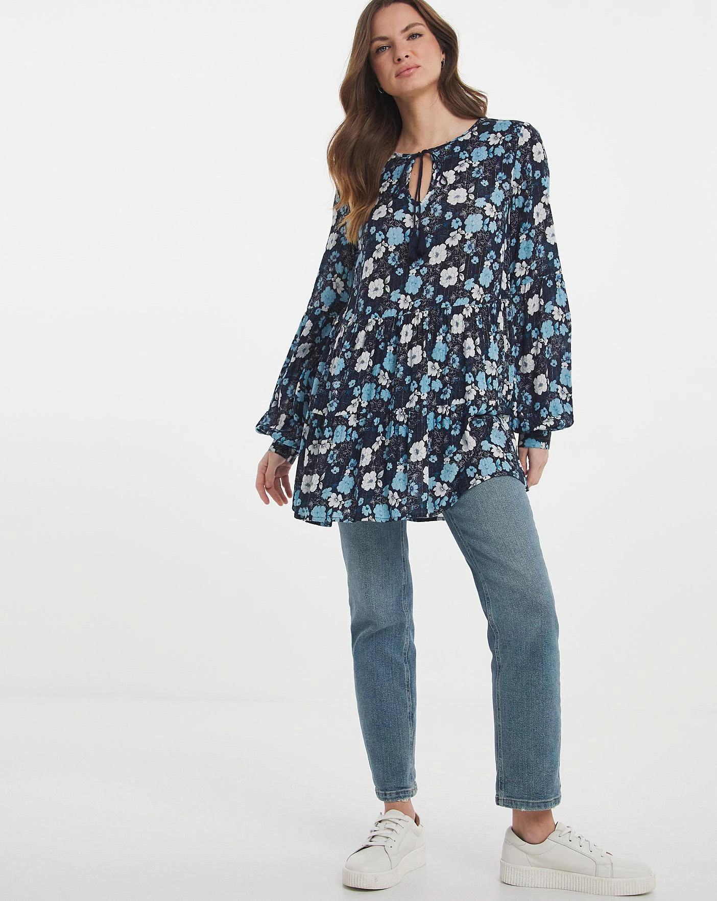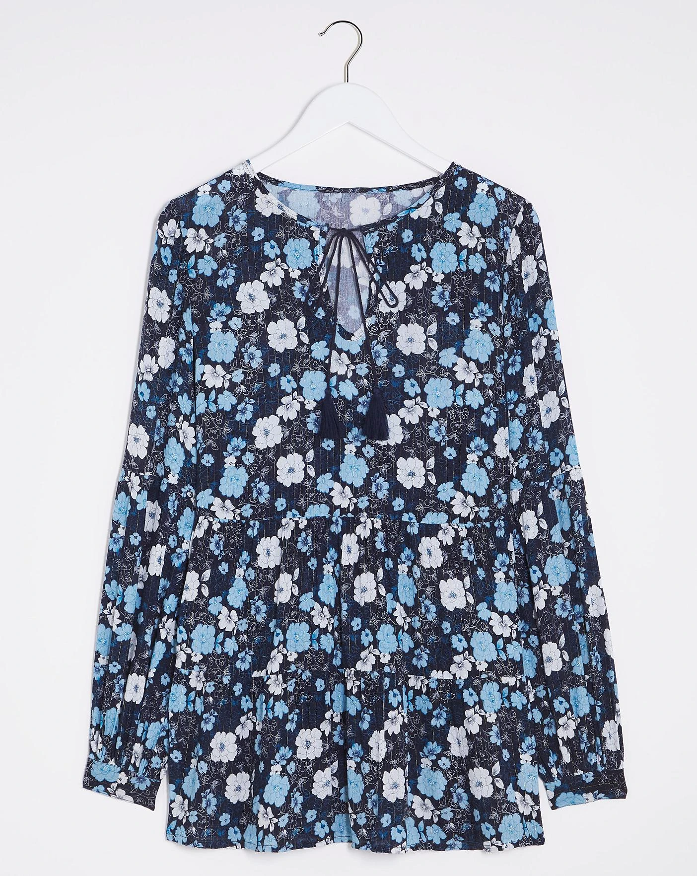 Designed in an eyecatching print, this blouse is both stylish and elegant. It features tassle detailing to the neckline, flowing hem fit and button cuff.