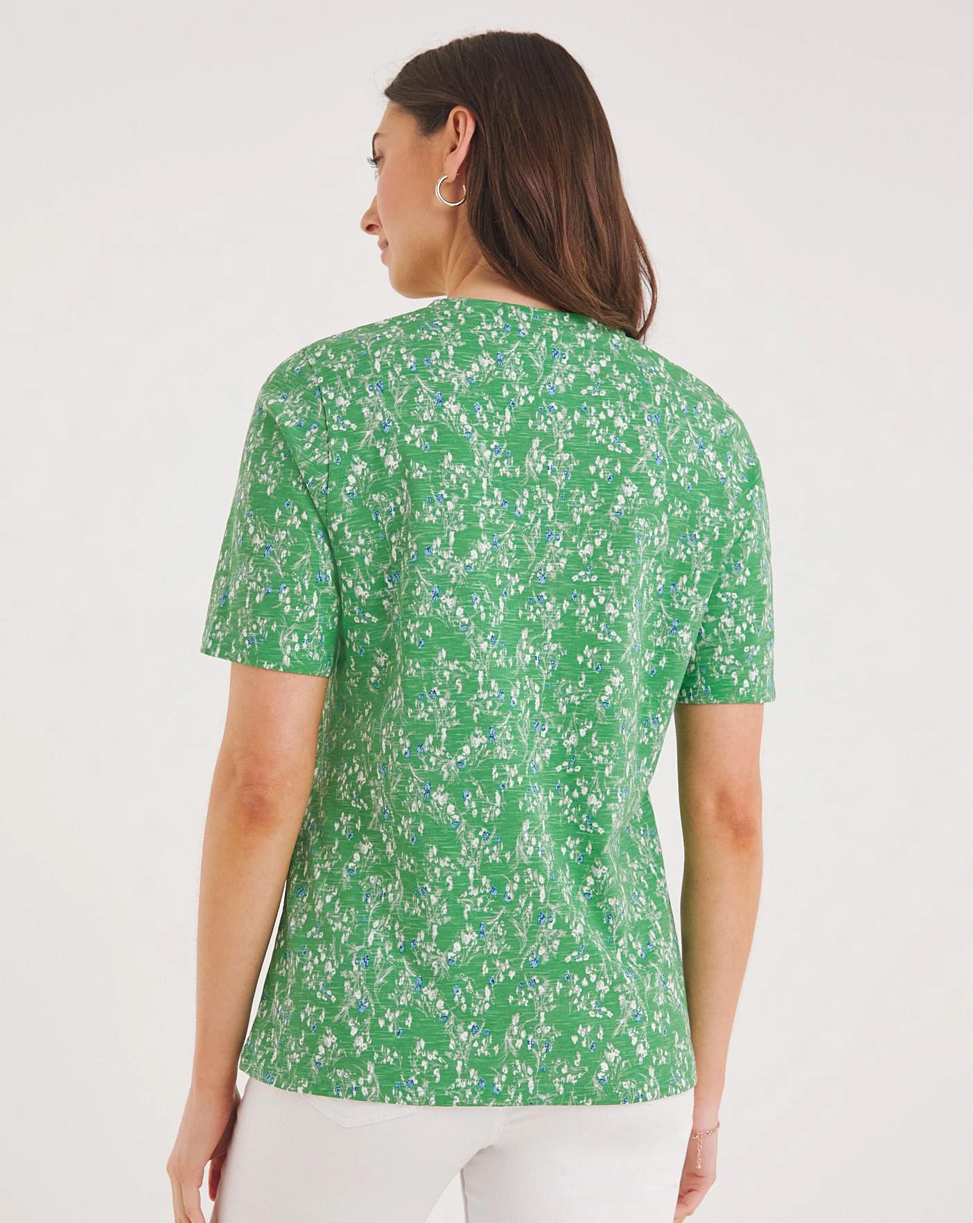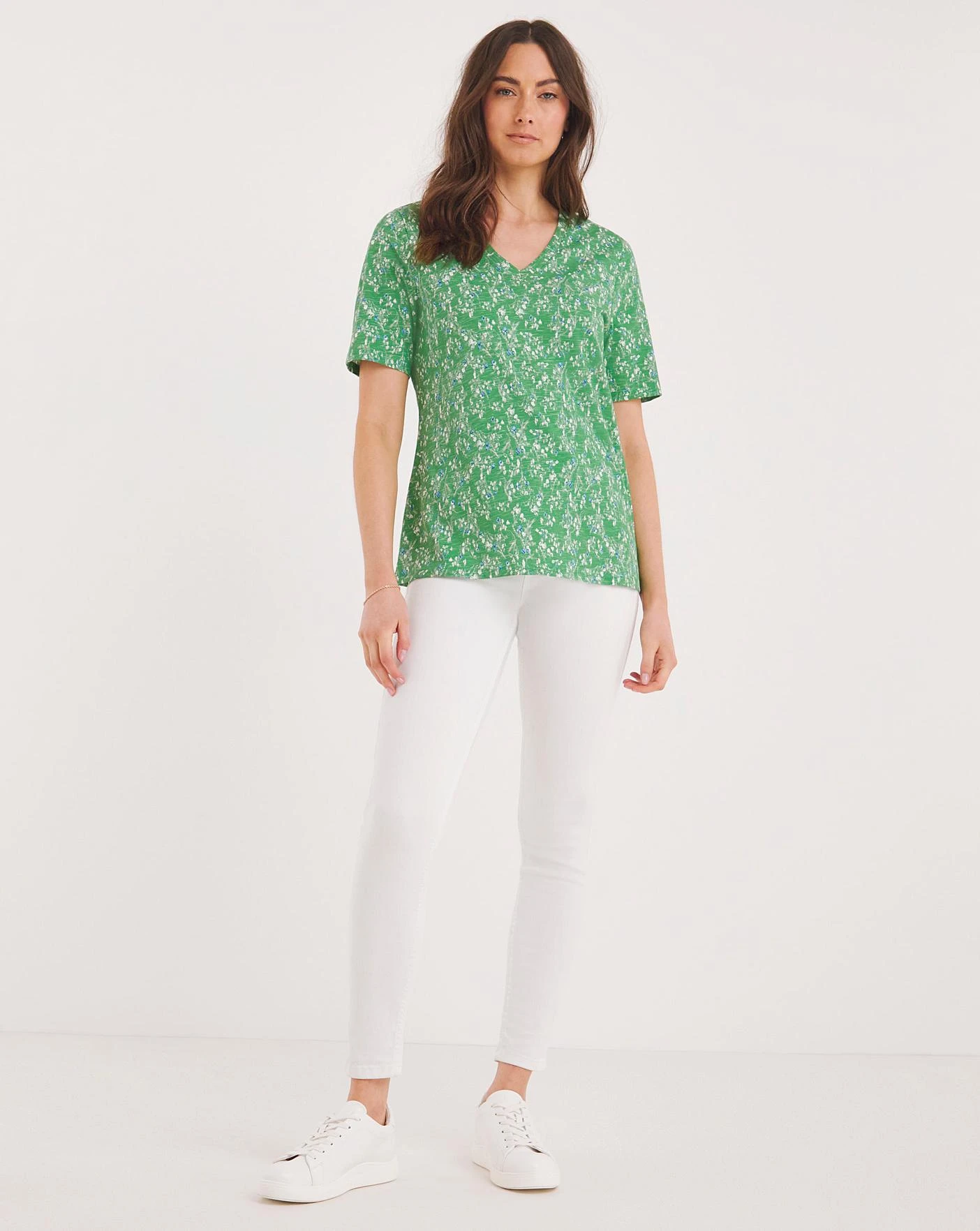 This jersey t-shirt features a flattering v-neck and short sleeves.. Crafted from a cotton modal fabric for extra comfort. Made by BCI cotton; by choosing our cotton products, you are supporting Julipas investment in Better Cottons mission. This product is sourced via a system of mass balance and therefore may not contain Better Cotton.