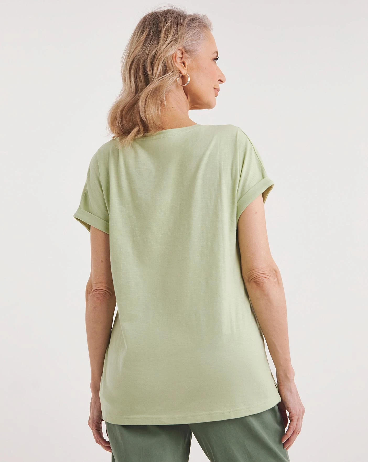This easy fit V-neck T-shirt with lace details is one to add to your basics wardrobe. Featuring short sleeves and made from BCI cotton. By choosing our cotton products, you’re supporting Julipa’s investment in Better Cotton’s mission. This product is sourced via a system of mass balance and therefore may not contain Better Cotton.