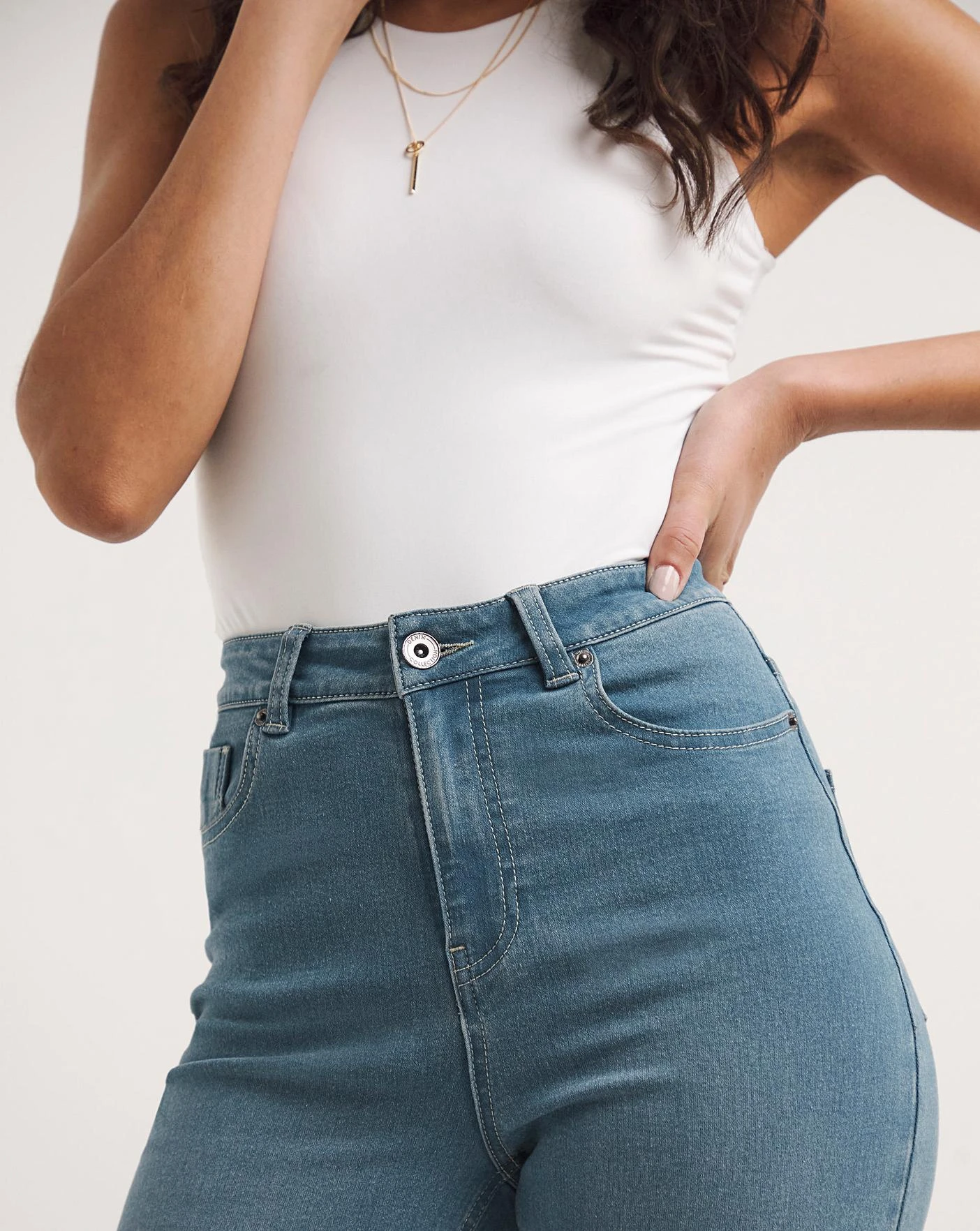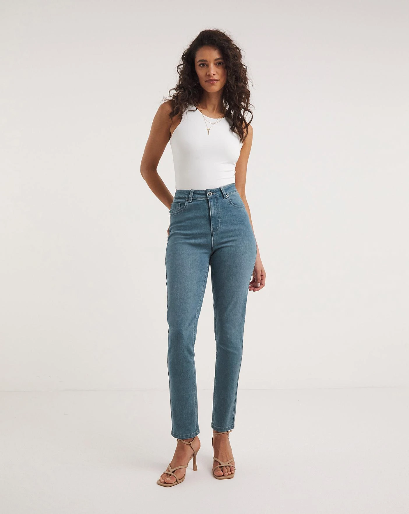 New and improved! Our Lexi slim jeans are a staple for any season. Made from a super stretch denim that is designed to mould to your curves and flatter your shape, these jeans are the perfect combination of comfortable and flattering! These jeans feature a high waist and slim leg fit. Now made with REPREVE® recycled polyester.
