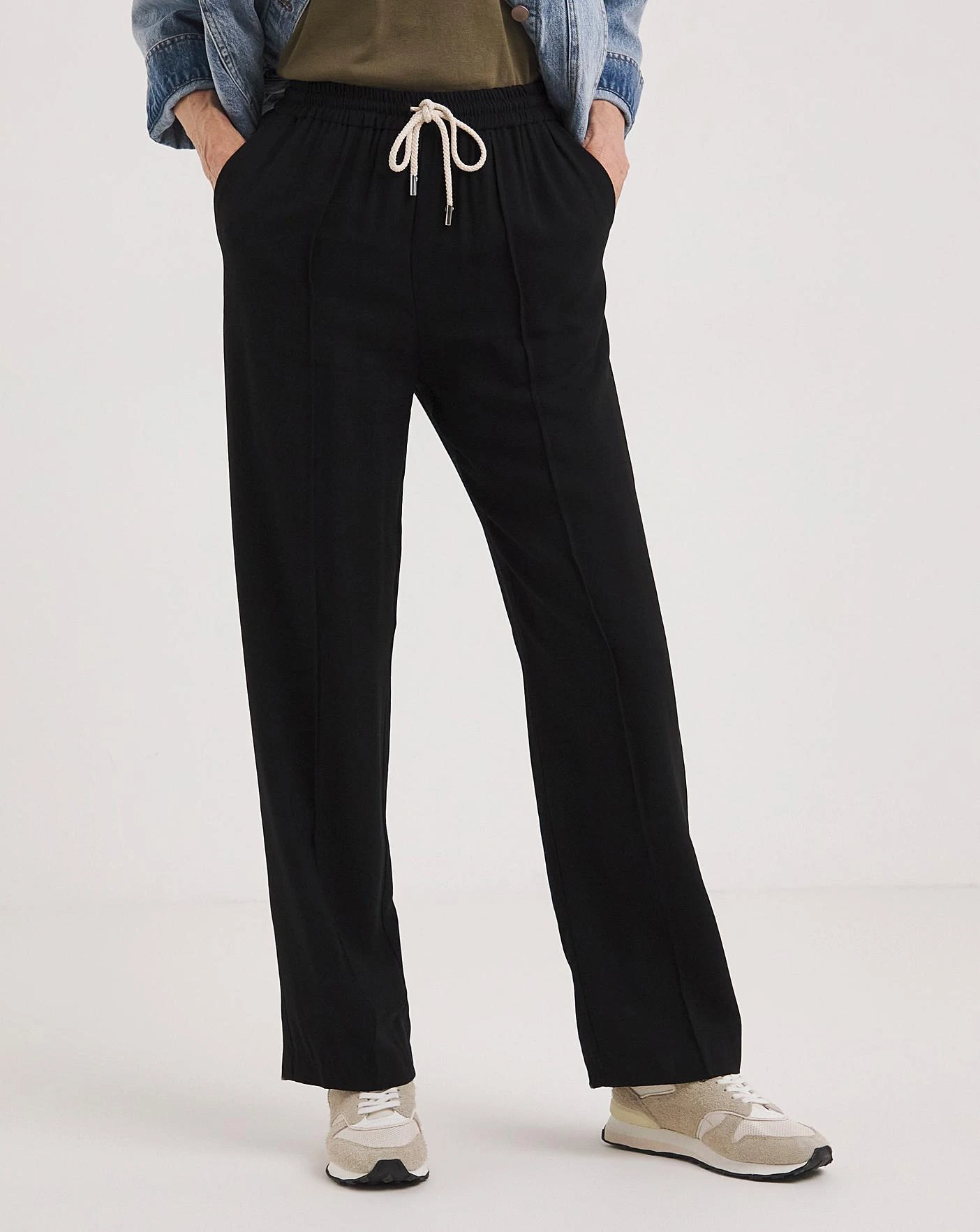 These trousers are cut from our finest woven fabric in an easy, wide-leg silhouette. They’re designed to sit high on your waist, which fastens with tie detailing. This verstile piece can be styled up or down for any occasion.