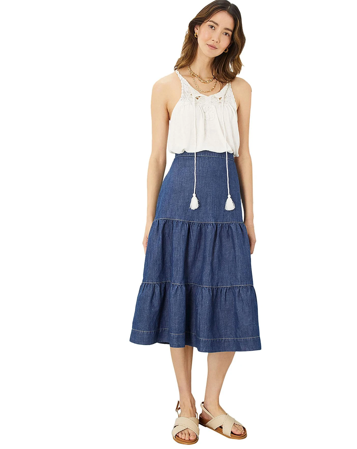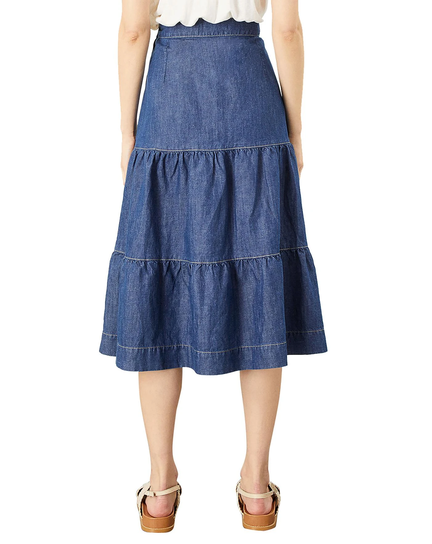 - Monsoon Hemp Denim Tiered Midi Skirt