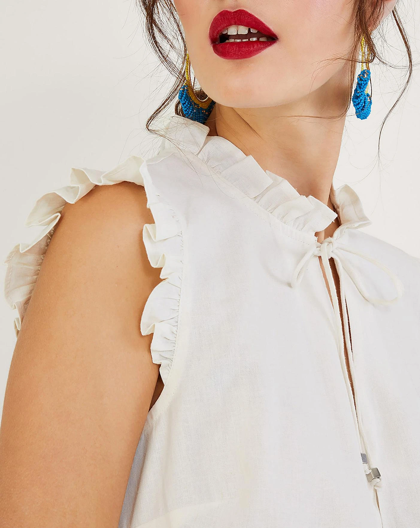 - After an effortless piece to slip on with your everyday jeans? Leave it to Lydie. Built in a sleeveless tank top profile, it features frill trims, a tie keyhole neckline and a simple dart below. Designed in an airy blend with linen and LENZING ECOVERO. LENZING ECOVERO is a sustainable fabric derived from certified renewable wood sources and made using eco-responsible production methods. It generates up to 50% lower emissions and water impact than traditional viscose, contributing to a cleaner environment. As part of the journey to make our clothes kinder to the world around us, this item was made using more sustainable raw materials, such as organic cotton, recycled polyester and viscose from responsibly grown forests.