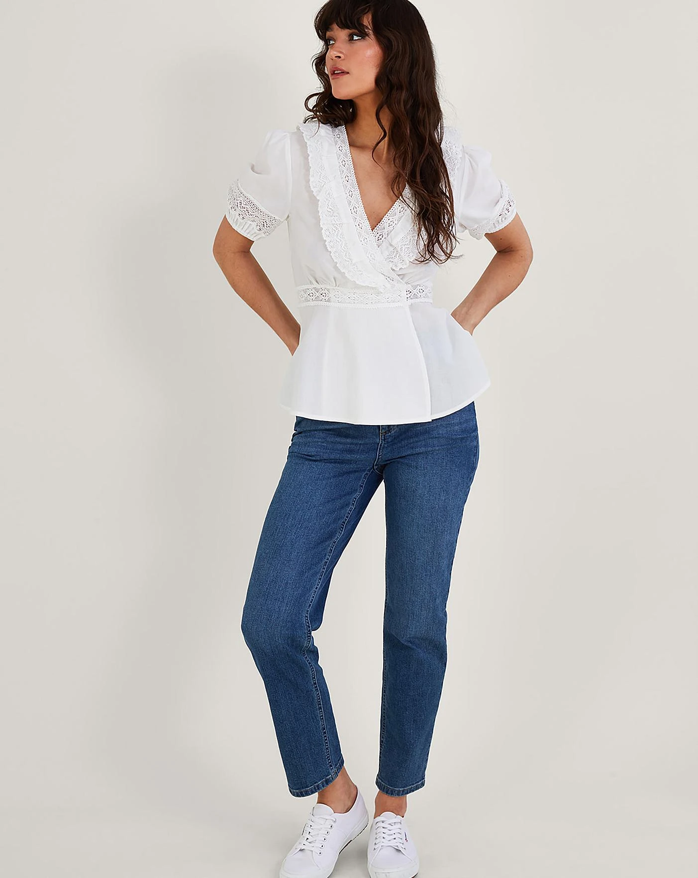 - Spring into the sunshine with Winifred. cut in our favourite wrap silhouette. She flaunts delicate embroidery to the neckline, waist, and sleeves for a pretty finish, spun in light and airy cotton that’ll keep you cool as the warm breeze comes in. As part of the journey to make our clothes kinder to the world around us, this item was made using more sustainable raw materials, such as organic cotton, recycled polyester and viscose from responsibly grown forests.