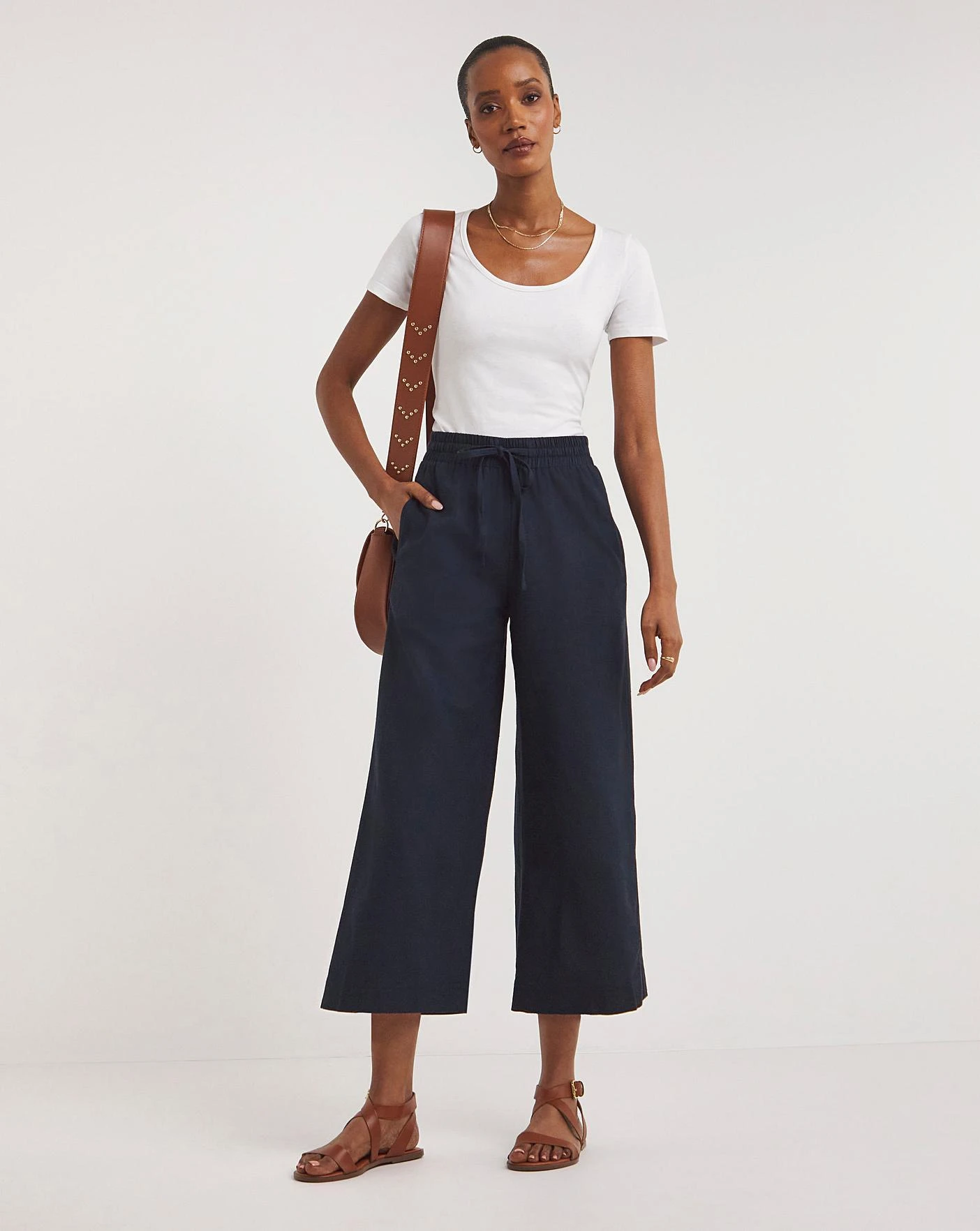 Culottes are the perfect style for warmer weather and these linen blend culottes are a true summer staple for your wardrobe. Featuring an elasticated waistband and in a super breathable fabric, these culottes are designed to fall at a flattering length. Perfect for summer holidays and everyday wear, pair these with your favourite trainers or sandals and a tee for and effortless summertime look. Available in multiple colours.