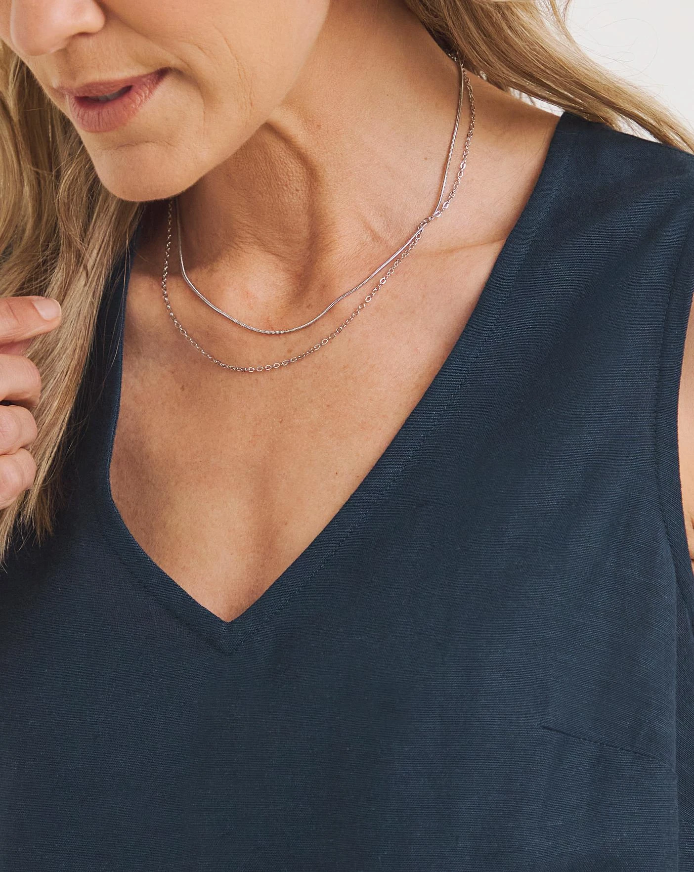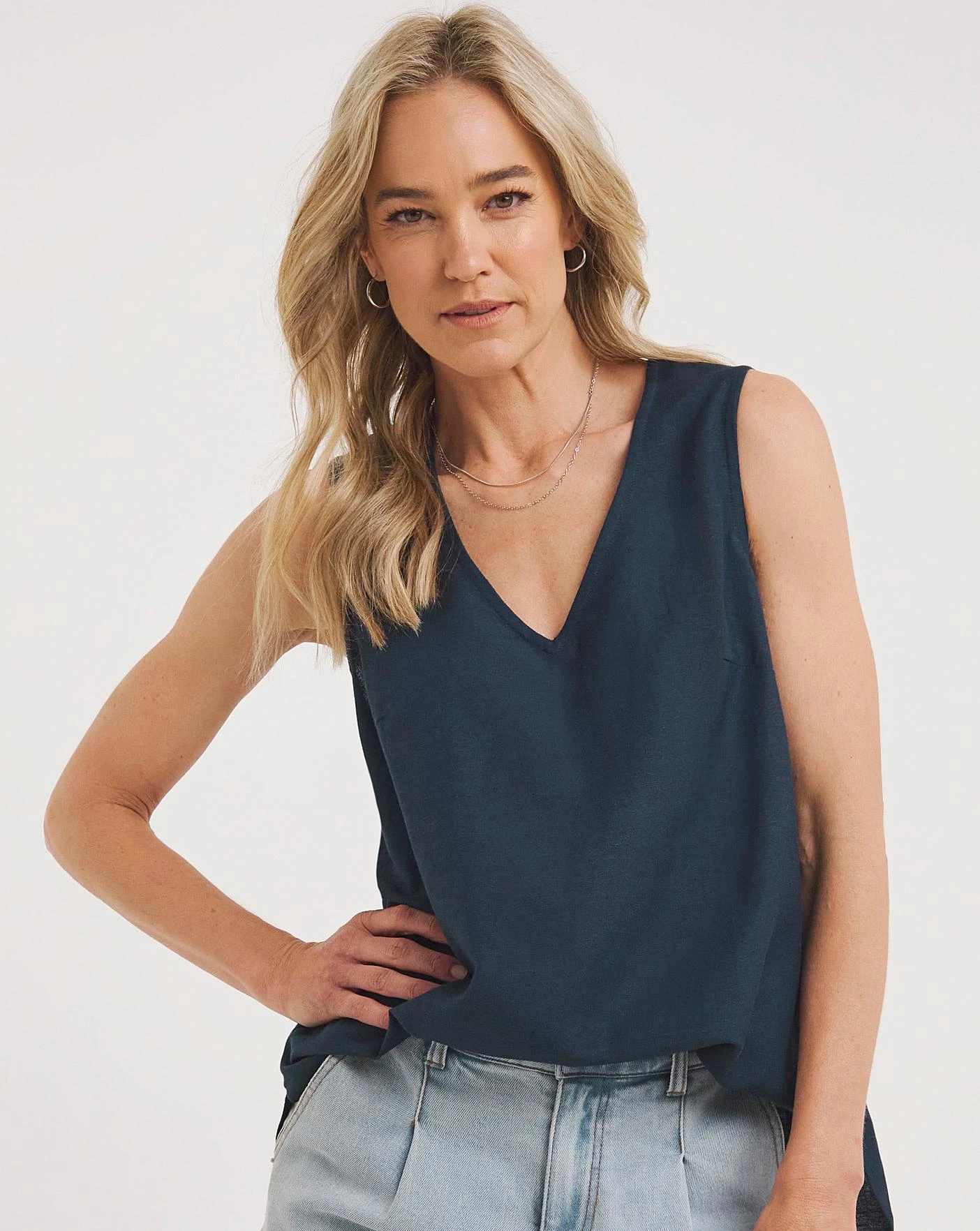 Perfect for the summer. This linen blouse features a V-neckline and can be dressed up or down. Style with sandals for a look we love.