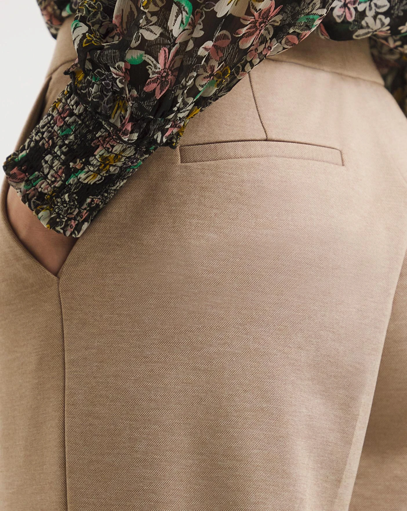 In a comfort stretch Oatmeal Ponte fabric, these straight leg trousers add an effortless tailored touch to any outfit. Cut to a contemporary Straight Leg silhouette, these trousers feature a mock horn single button fastening, side pockets for practicality and mock jett pockets on the reverse. Complete the look with our Oatmeal Ponte Blazer or wear as a versatile separate to carry you from season to season.