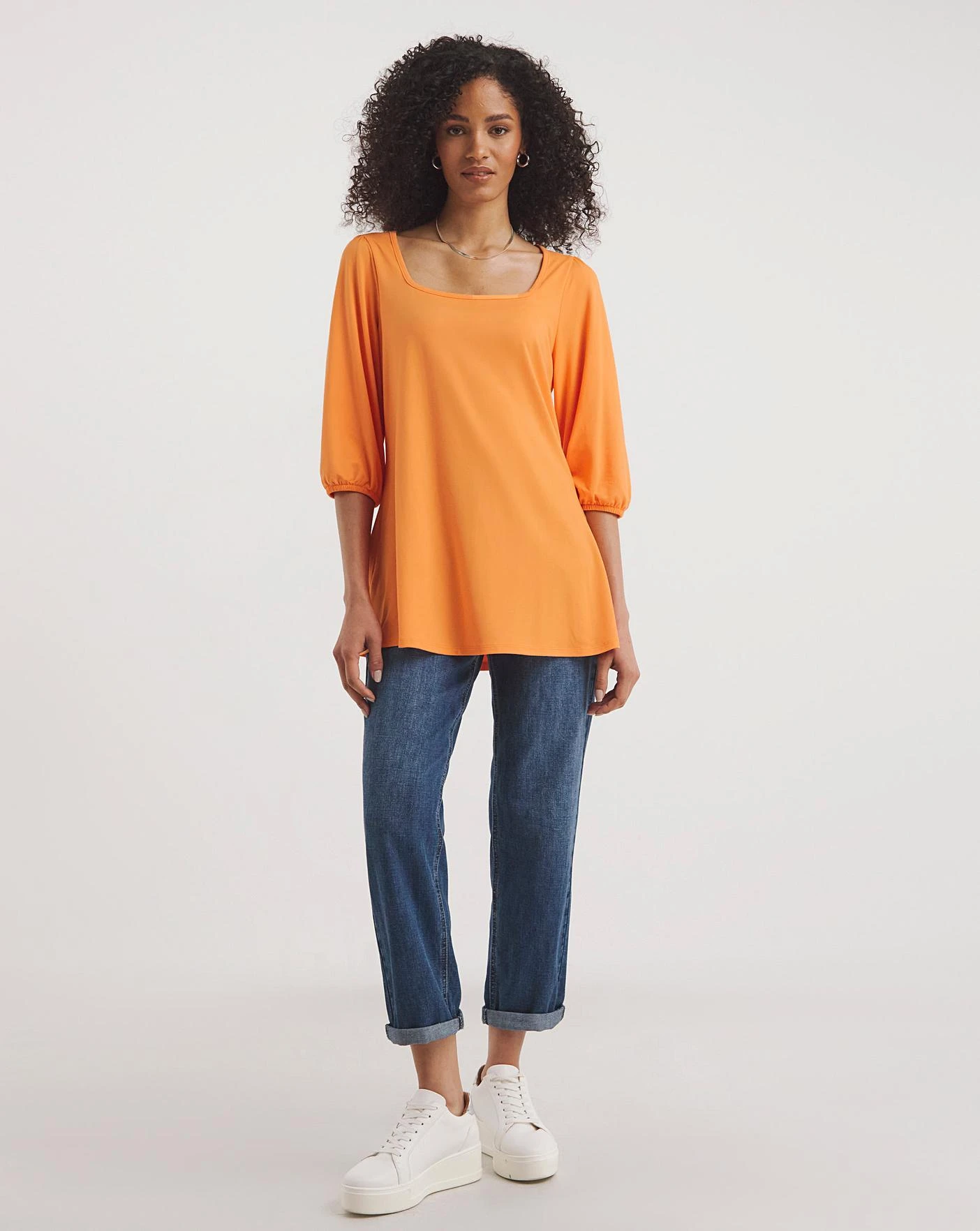 In our popular soft touch material, this square neck top is perfect for your wardrobe! Luxuriously soft and comfortable, this top features volume sleeves designed to be super flattering. Pair this with leggings or jeans for a laidback yet stylish look, that is perfect for relaxed days. Relaxed fit.