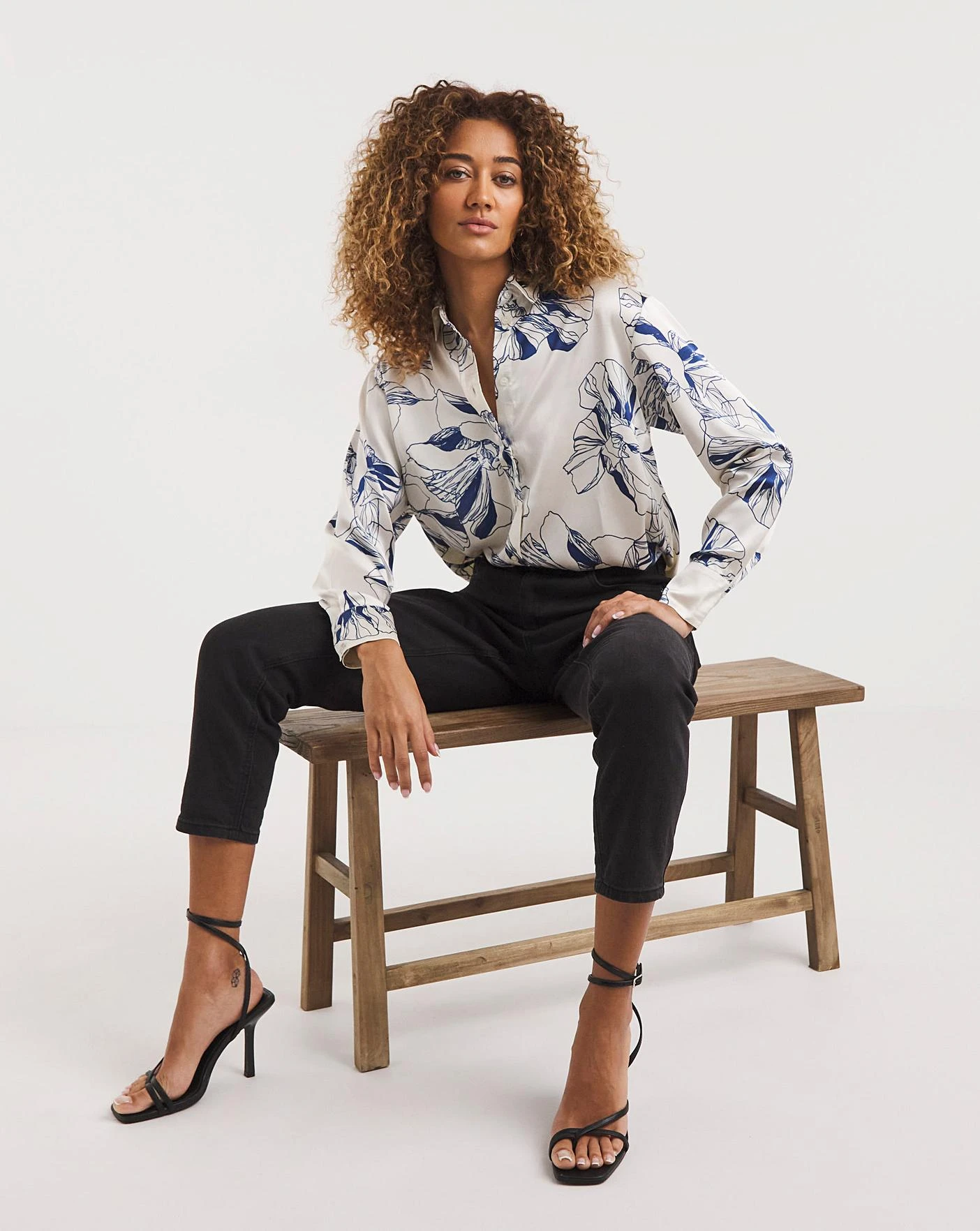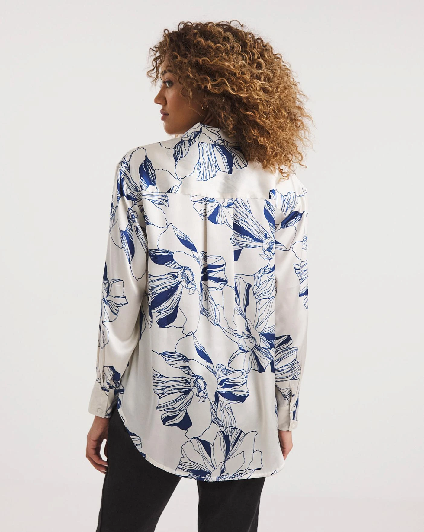 Our oversized satin shirt is a great transitional piece that can be paired with jeans for the perfect going out look or dressed more casually for work. Please note that this top is made of a non-stretch fabric and comes in a relaxed fit.