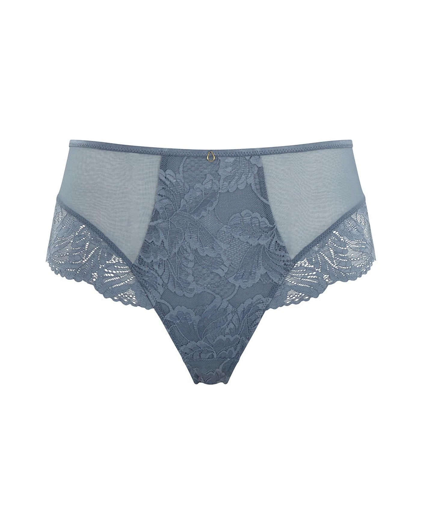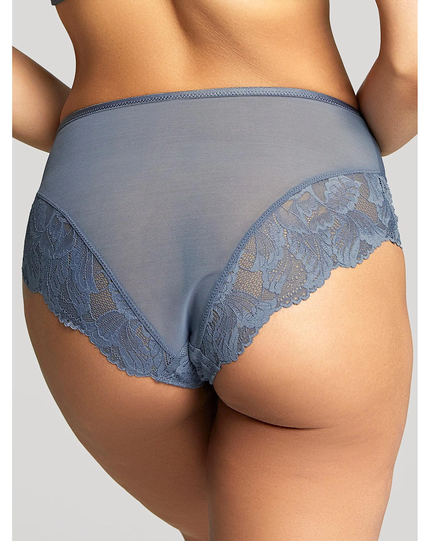 - Deep brief with stretch lace panels on the front and back for a smooth finish – in Steel Blue