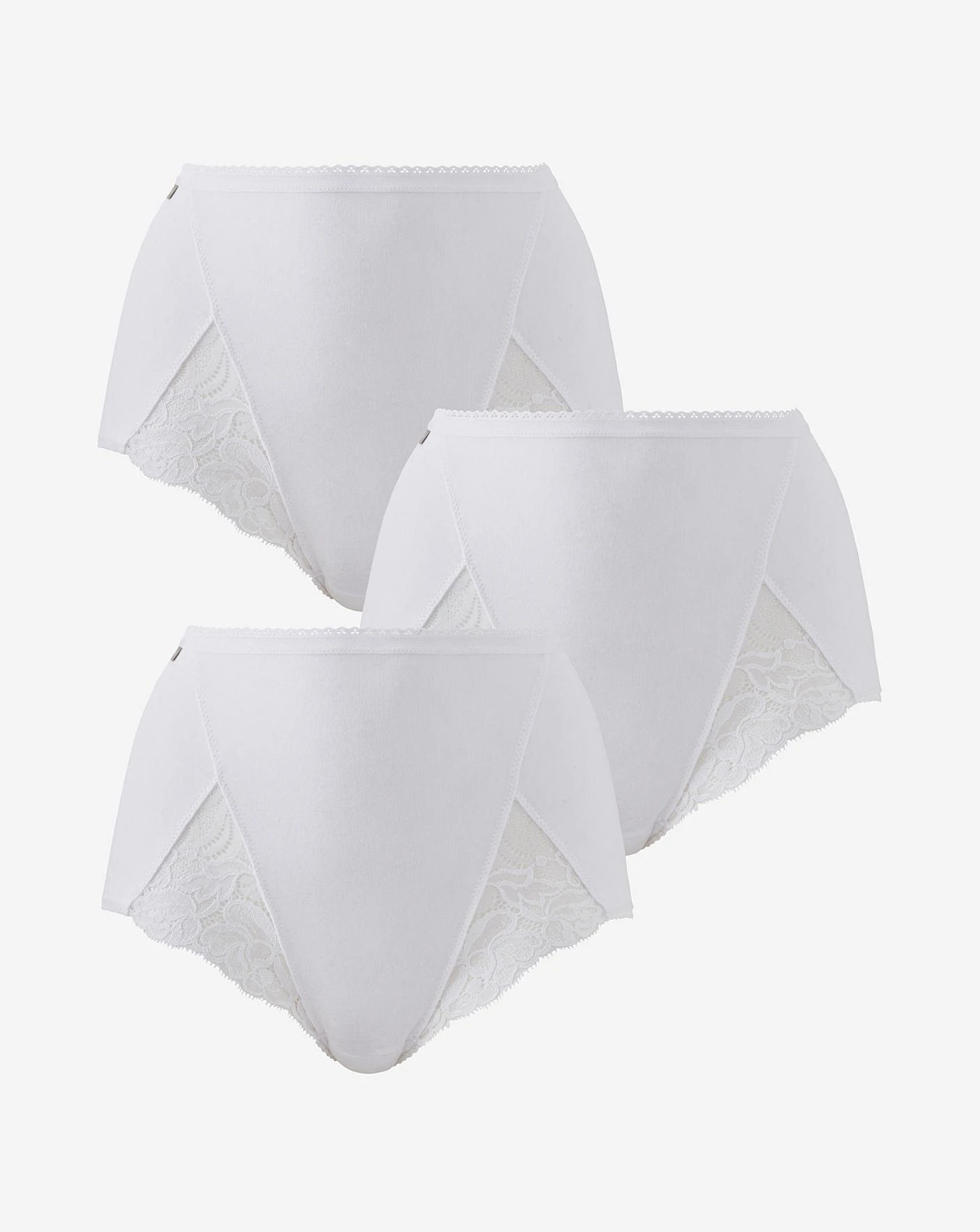 Cotton and lace 3 pack maxi briefs offer absolute comfort everyday. Ultra soft stretch cotton with lace inset at front legs. Great cut and coverage for a perfect fit and feel.