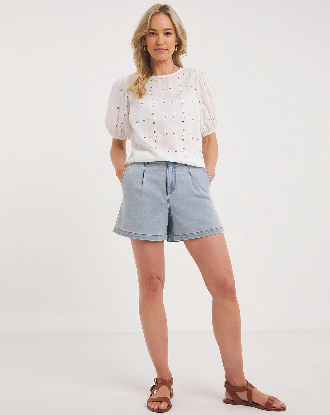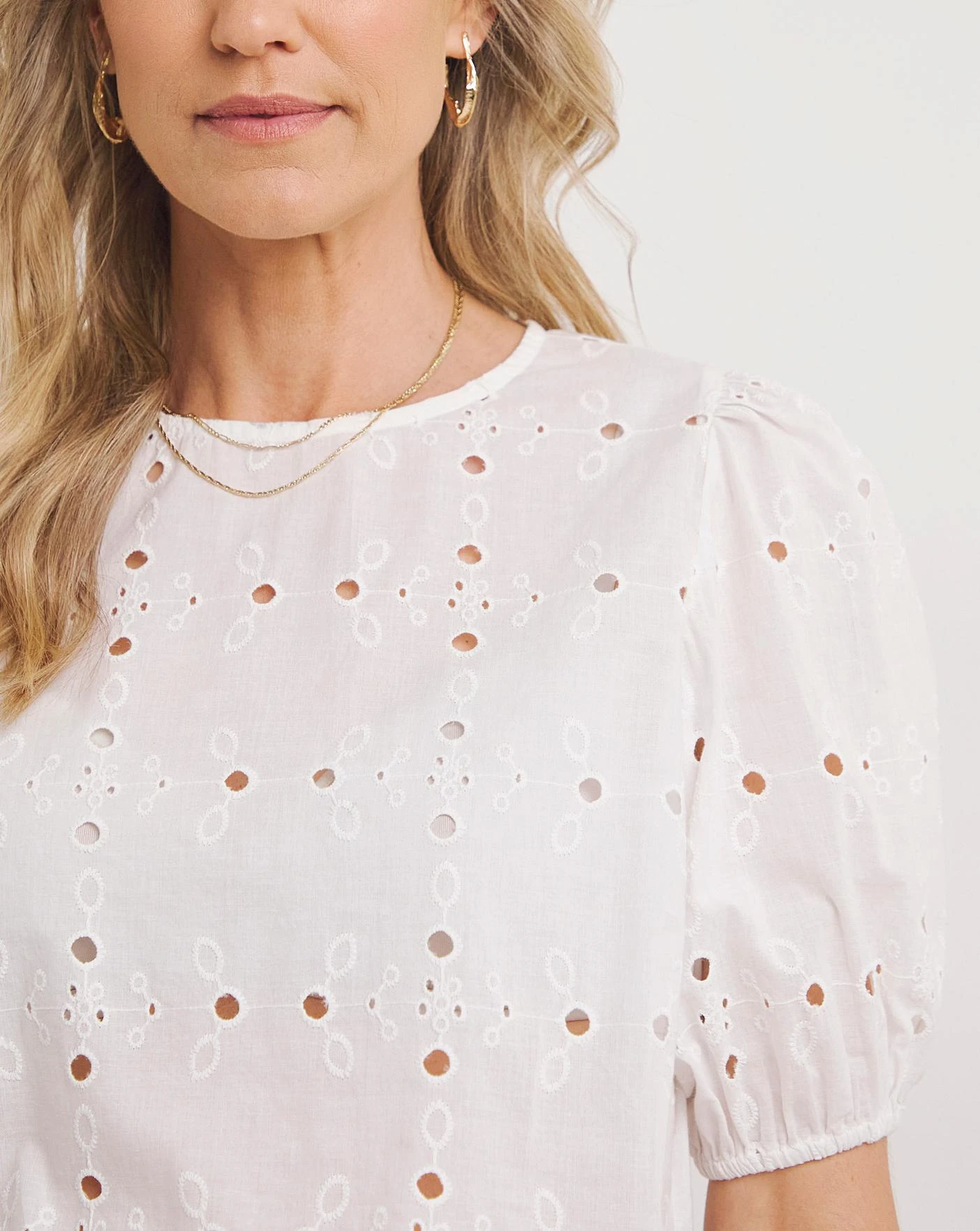 Transition into the new season with our puff sleeved broderie top. This top can be paired easily with jeans or shorts and comes in a relaxed fit.